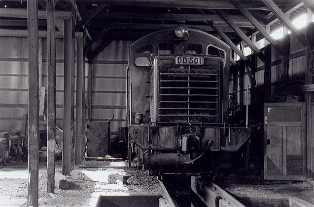 ![]() 筑波鉄道DD501は、新三菱重工三原製作所で昭和29年に製造された、センターキャブDLです。前後のボンネットには225PSのディーゼルエンジンを搭載していました。 整備重量39.71t、動輪径860mmのロッド式伝導で、主に貨物輸送に従事していましたが、その役目を終えてからは、国鉄から乗り入れの12系客車による季節列車「つくば号」の牽引や、保線列車の牽引にあたるなど、殆ど庫暮らしの毎日を送っていました。 私が真鍋の車庫を訪れた昭和61年2月27日も、クラの奥深くに仕舞い込まれて埃が積もってはいましたが、足まわりの各部には注油が施されていて、今にも動き出しそうな充実感が漲っていました。(もりこー)
