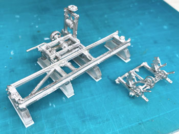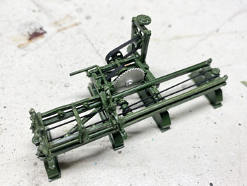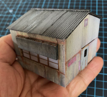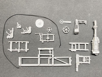 ![]() ![]() 製材会社ですから丸太と材木を並べておくだけじゃ物足りない。何か製材機械が欲しいのは人情です(^_-)。 まず頭に浮かんだのは、テーブルの上に丸鋸の一部が出ていて、テーブルの上に丸太を乗せて押しながら定尺に切っていくバンドソウ。 タモリと小松政夫がやってたあれです(^O^)。(2分40秒あたりから) そこで「バンドソウ」「丸鋸」で検索して、自作も辞さないけれど、どんな格好をしているんだろう、と思って調べてみても、出てくる画像は今の機械は自動化されてるのばかりで、どうもイメージと違う(@_@)。 困ったな〜と思いながら、もしかしたら外国の模型メーカーで製品があるかも知れないと「さかつう」のサイトに行ってみたらありました。蒸気動力のが(^^ゞ。 でも無いよりましだし、これを使って一部は自作すれば何とかなるような気がして注文。 例によってバリだらけのホワイトメタル製で「テーブル」の長さは7cmほどのもの。 さてと、これをどうやってモーター化していくか、バリを取りながら考えてみます(^^♪。 あと一緒に注文したのが「伐採セット」。ノコギリの形は西洋風だし、使えるのはチェーンソウとジェリカンぐらいかな?とも思ったのですが、チェーンソウ欲しさに買ってしまいました(^O^)。 ![]() アメリカ製のキットらしく、やたらバリだらけで、反りなんかもありましたが、こういうものが製品で存在することに感謝して作りました(^O^)。 キットは蒸気動力なのですが、製材所の床下にモーターが据えられているという想定(言い訳)にしてみました。 ですからボイラーなどはゴミ箱へ。 このキットには脚が全く入っていないので、厚いプラ板を2枚重ねて糸ノコで台形に切り抜き、更に床面にはt0.3板でフランジを付けておきました(^_-)。 色は最初からグリーンにしようと考えていたのでフラットグリーンを塗り、塗料が乾いてからコピー用紙を黒く塗ったものでベルトを作ったり、付属の黒いゴム紐で作動部分のベルトを付けたり、この部分だけは無塗装とした丸鋸を接着しました。 ![]() 出来上がったバンドソウを製材所の中に入れてみようとしたら柱が邪魔して入らない(@_@)。 やむなく屋根を剥がして入れてみたのですが、大きすぎてはみ出してしまう~(>_<。)~ 流石にグワッシ!と詰まったのですが、しばし考えて短くして対処することにしました。 云わなきゃ分からないですからネ(^O^)。(これをお読みの方々だけは知ってる、、、) ![]() 外科医ブラックジャックの如く、糸ノコ片手にバッサリと切り開き、2/3の長さに詰めました。 そしてまたフラットグリーンを塗って、黒いゴム紐を掛けなおしてやり完成。 今度は流石に収まりましたが、狭い工場内、えらく作業がしにくそうですね(^O^)。 ![]() 13話で御紹介したお客様から、次の作品ができましたと云って、写真を送ってきて下さいました(^^♪。 ボクはスペースの関係からこの建物は省略してしまったので、ボクがお送りした図面の中には入っていません。 つまり独自に設計されたものですから、大したものです(^_-)。 ボクが思わず返信してしまったのは、「おおおおお、ガゼッてますね〜!(ガゼットというアメリカのナローゲージ専門雑誌があり、そこに出てくる作品はワビサビのある風合ばかりなところから、珊瑚模型店のスタッフはこういう作品にこの言葉を使っていました=最大級の賞賛の意味です)」。 なかなかの作品です(*^^)v。 |