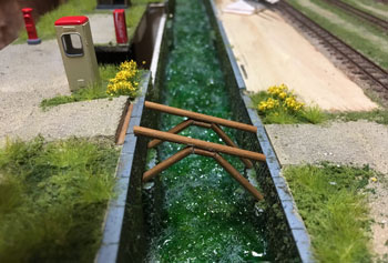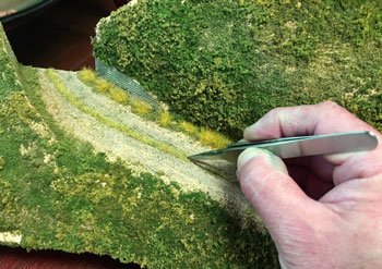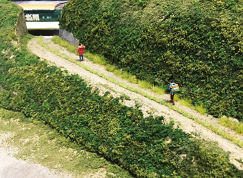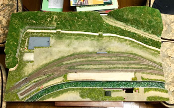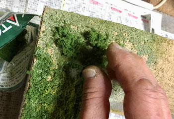 ![]() ![]() 山の地肌に塗ったテクスチャーペイントが乾いたら下草を撒きます。その材料は飽きもせずターフとコースターフです(^O^)。 地肌に薄めた木工ボンドを刷毛で塗って、ターフを振り掛けて、適当にコースターフを置いていきますが、もちろんそれらは色合いの違うものを適宜使い分けてニュアンスを出します。 撒き終えた状態の写真をお見せしますが、ともするとスケール感の狂いで、何やらこれで山が出来たような錯覚を起こしますが、これで下草を撒いただけの状態です(^^ゞ。 ![]() 下草を乾かしている間に、駅舎の脇の橋を作ってしまいます。 骨は3mmの桧丸棒で、たま〜にしか使わない材料ですが、あると便利なものです。 これを現物合わせで切って作り、別に1mm厚バルサで橋を作ってフラットブラックで仕上げておきます。 人や車両が通るところは泥に汚れた感じを出すため、ハンブロールのサビ色でお化粧しておき、骨組みと合体させます。 ![]() ストックしてあった雑草の在庫が底を突いてしまったので、いま一般的に入手可能な「ミニネイチャー」と、先日、松本の模型店で買った1/72と称する雑草を適宜使い分けていきました。 ![]() 山道の轍の間の雑草は1/72のものを使って控えめに表現してみたのですが、1/72とはいえ、あって無きが如きスケールですから、高さ1〜2mm程度のこの雑草はピッタリな感じで満足(^^♪。 ついでにプライザーの登山者も置いてみたら、雰囲気がグッと良くなりました(*^^)v。 ![]() 木工所でやってみたかったのが散乱したオガクズ!(^^)! このオガクズは本物のオガクズですが(^O^)、細工用の一番目の細かいノコギリを使ったら、かなり細かいオガクズが出来ました\(^O^)/。 1mm角やら1x3mm平角の桧棒を42mmに切って積み上げ、土間にはそれらの切れ端を散乱させたり、2間モノを立て掛けたりしてみましたが、目立たない位置ながら、意外とこのレイアウトでのハイライトになりました(^^♪。 |
