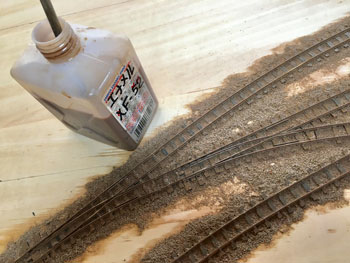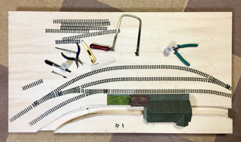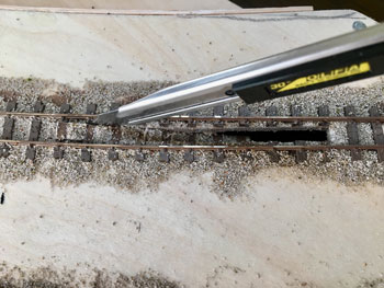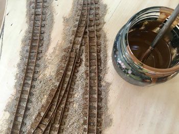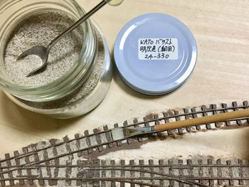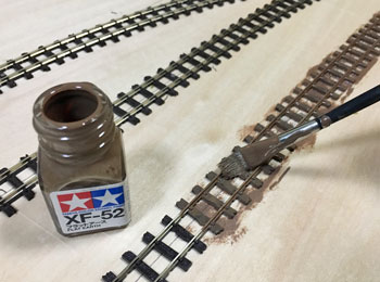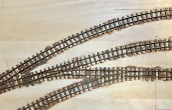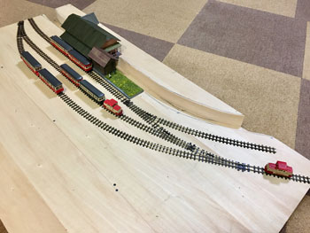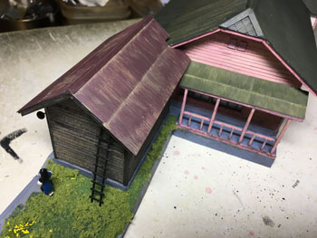 ![]() さて、いよいよ線路を敷設します。プランではヤードが4本の予定でしたが、実際にレールを敷いてみて、これはスペース的に到底無理なので、実際と同じように3本にしました。正に机上論でしたネ(^^♪。 ただ、出来るだけヤードの有効長は長くとりたいので、右端のポイント1基はそうと思わせるようにしてみました。 あと、機関庫の奥には小さなターンテーブルがありましたが、これは作業量対効果を考えて省く事にしました。あくまでも撮影用のレイアウトですから、割とそういったところは割り切ります。 また、駅舎の色についてですが、ネコパブリッシングで出版した「尾小屋鉄道」の表紙にあるい写真を見て薄いピンク色にしたのですが、その後、或るプロラボに勤務していらっしゃったお客様から「あれはフィルムの変色によるもので、実際には末期までクリーム色だったと思います」というメールを頂きました。 確かにその方が書かれていたように地面の色もピンクっぽい感じで、それを見抜けなかったボクの手落ちですが、新黒田駅のように、尾小屋駅を題材に「いかにも尾小屋っぽい感じにしたかった」という意味では、色が違っていてもイイかな?とは思っています(^^♪。 ![]() 線路を敷設したら着色です。ここいら辺はもう何も考えずに定石通りに作業を進めていきます。 使う塗料はエナメル系のフラットアースで、これを原液のままレールと枕木と一緒に塗っていきます。レールの側面に塗り残しが無いか?注意しながら。 ![]() ホームの部分をマスキングしてからバラストを撒いていきますが、これもボクの定番でKATOの明灰色を丁寧に筆で均しながら出来るだけ均一に撒いていきます。 ![]() 水に僅かな中性洗剤を垂らしたものを霧吹きで吹いて湿らせ、そこに木工ボンドを水で薄めたものをスポイトで落としていきます。 中性洗剤を入れる訳は界面活性剤の役割で木工ボンド溶液が球にならずにサッと浸透させるためです。 ![]() バラストが充分に乾いたところで、大き目の方の機関庫にあるピットをカッターで切って開けます。 ![]() ピットを作ったら、レイアウトパネルの裏側に2mm厚のバルサで囲んでおき、底の部分も作って接着します。 話は変わりますが、この段階で知人から頂いた写真を見ていて、駅舎の向かって左側には対岸に向けての橋があったことに気づきました。 このように欄干まである様子なので、追加工事で作っておきました(^_-)。 ![]() バラストも充分に乾いたことですので、枕木の上に流れてしまったバラストをマイナスドライバーで取り除き、木工ボンドを撒いたことで何となく白くなってしまったこともあって、もう一度サッとフラットアースを塗っておきます。 そしてシンナーで薄めたフラットアースをバラスト部分にも塗っておきます。 とにかくこの段階ではフラットアース・フラットアースですネ(^O^)。 |