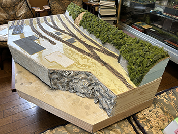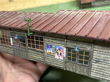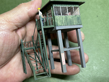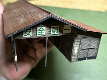 ![]() ![]() ささやかな(^O^)プラットホームを作りました(^-^)。 土留め石は例によって紙粘土から作り、3mm厚の土盛り部分に接着して塗装。これをボードに接着しました。 ![]() さて、これでいよいよ土を流し込める状態になりました(^_-)-☆。 結構な面積に流し込むので、何回かに分けてやるかも知れませんが、頑張ってみましょう。この作業って結構ドキドキするんですけど(^O^)。 タミヤ・テクスチャーペイントの溶液を流し込みました。まるで田圃の水鏡のようです(^O^)。 ![]() ![]() 夕食後に各々の建物に標記やポスターを貼ってドレスアップ。 映画や選挙のポスターは貼れませんが、安全週間のポスターなどは詰所にピッタリでしょう(^-^)。 これらは貼ってからウェザリングマスターで軽くウェザリングをしておくと、やたら目立つこともなく落ち着いて溶け込んでくれます。 ![]() ![]() これは大鹿にも立っている写真がありますが、この実物は田島の構内に捨てられていたものを恐らく林鉄クラブの方が保護してレストアされたのでしょう。 むかし田島で見て「あ、味っぽいな〜」と思っていたのが、ある時に行ったら無くなっていて、数年後に松原で綺麗な姿で再会できたので。 今日この日のことを思って正面から撮っておいたので、上手く縮小プリントして使えないかな?と思っています。 こういうのがあるとレイアウトは引き立つんですよね〜(*^^)v。 ということで、テクスチャーペイントを原液のまま追加して、それが固まるまでの時間を利用して「チューリップ看板」を作ってみました(^^♪。 元の写真をトリミングしたものをワードの画面に「これぐらいかな?」という感じで3種類レイアウトしてプリント。 結果的には一番右の葉っぱの左右が10mmのものを使い(これって結構大きいんです)、これをカッターで切り抜いて、Φ0.5洋白線に貼り付けてやりました。 洋白線にしておけば塗装の便が省けるし、実物的に考えても錆びなくて良いでしょうから(^O^)。 このデザインは独占するつもりもありませんから、この写真をダンロードしてどんどん使って下さい(^_-)-☆。 |