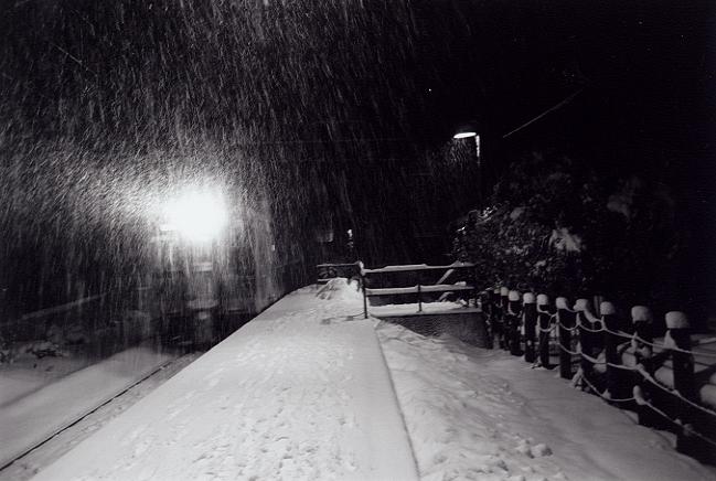 見る見るうちにコートは雪ダルマになってしまう程でしたが、水銀灯に照らし出された雪はキラキラと美しく、魅力的でした。