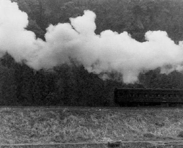 前作に引き続き、中学2年生の時のカットです。天ケ瀬駅に降り立った時には霧雨だったものが、歩き出すと本降りになってき、とんだ旅行の初日になってしまいました。母が無理やり持たせた折り畳み傘を差しながら待つこと2時間程。遠くから特徴のある汽笛が聞こえたかと思うと、8620牽引の客車列車が雨の向こうを滑るように走り過ぎて行きました。