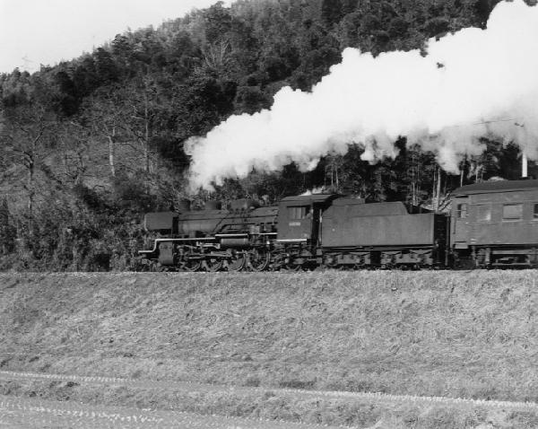 一連の九州旅行が続きます。当時蒸機の宝庫だった筑豊本線には、様々な形態のD50が存在しました。化粧煙突・パイプ煙突・大型デフ・門デフ。これらの組み合わせにより「今日はどんなカマが来るかなあ」というのが楽しみだったものです。この朝、筑前内野で列車を降りた僕は、筑前山家との間に聳える冷水峠を目指して歩いて行きました。途中、朝陽を斜光に受けている素晴らしいポイントがあったので、そこでこのカットをフィルムに納めました。朝陽に光る真っ白い煙が、とっても綺麗ですね。