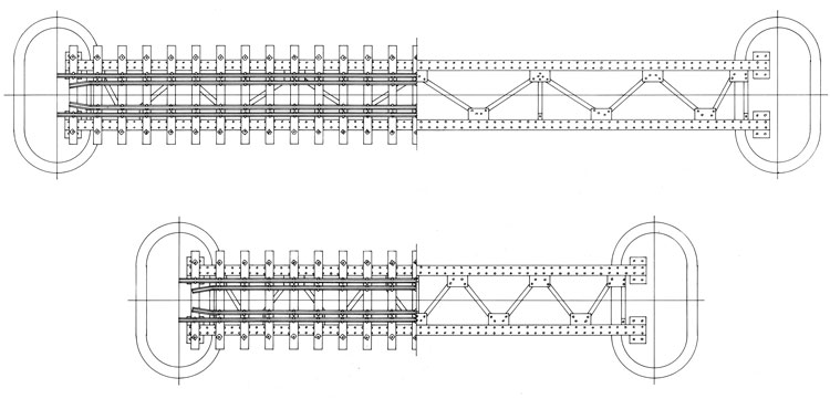 ![]() 車輌だけがハイディテールを追求しても、それを引き立てさせる小道具がお粗末なものだったら、折角の車輌が泣いてしまいます。そんな観点から、岩崎製ナロー用ポイント転轍器に引き続き、長短2種類のデッキガーダー橋を製品化することに致しました。 デッキガーダーは単純な構造ゆえにナローでは最も一般的なスタイルで、様々な情景で使われていました。もちろん渡る川の幅や地形により長さは千差万別ですが、静岡鉄道駿遠線のように大井川を渡る場合でも、重量計算やコストの観点からか、デッキガーダーを何連にも繋げて使用していました。 今回製品化したものは、15m級(172mm)と10m級(112mm)の2種類。様々な写真から判断すると、このクラスが一般的な長さだからで、高さも高低と変化をつけてみました。 ![]() ![]() 製品の構造は車輌と同じように、主要部品は美しくエッチングされた真鍮材をプレスしたもので構成されていて、そこにディテール豊かなロストワックス部品が添えられますので、出来上がるとメリハリの効いたものになるはずです。 追求型の方はレールと枕木(2x1.5mmの桧角材)を別にお求め頂く必要がありますが、面倒な方はフレキシブルレールをお使いになっても良いでしょう。また、橋脚は使われる情景によって高さもスタイルも様々ですので、あえて製品には含まれていません。作り方の一例を説明書では解説していますので、それを参考になさってください。 15m級 トータルキット ¥9600 未塗装キット ¥14400 塗装済完成品 ¥19200 10m級 トータルキット ¥8000 未塗装キット ¥12000 塗装済完成品 ¥16000 ※塗装済完成品では、塗装色を赤と緑の中から選べますので、御予約時に御指定ください。 *10m級は完売になりました。(2009.08.31) *残り部品をチェックしていましたら、既に在庫切れになっていた10m級が2セット分だけ販売可能になりました。この製品は当分再生産を致しませんので、御希望の方はこの機会にどうぞ。(2010.07.11) *10m級は完売になりました。(2010.07.11) ![]() 写真のように中間の補強材(左が15m級用、右が10m級用)と、枕木を橋に止めるボルト&ワッシャはロストワックスで出来ています。 |