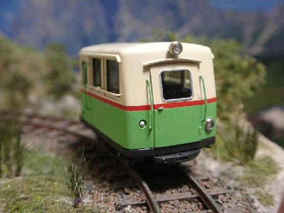 ![]() 2001/10/03 前略 前回に引き続きモーターカーUが完成しましたので、ご報告いたします。 この車両では、雨樋後半のR、前部ドアのヒンジ、後妻面に給油口、カプラー部分のRと後部に排気管、をディテールアップしてみました。 色はグンゼカラーの各色を混合、ピースコンによる吹きつけです。今回は以前作った車両展示用のジオラマの上で撮影してみました。 模型誌などの情報では、プロトタイプの4号機がレストアされ保存されているとのこと。21世紀の今実物を見ることができるのは、本当に嬉しい限りですね。 もりこー:新井さんも精力的ですね。プラカラーで剥がれないですか?と新井さんに問い合わせたところ、「マッハのメタルシールプライマーを下塗りすればいけます。ただしグンゼの塗料は、プライマーと同じラッカーシンナーで薄めるのが肝要です。」とのコメントを頂きました。