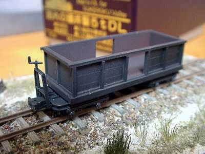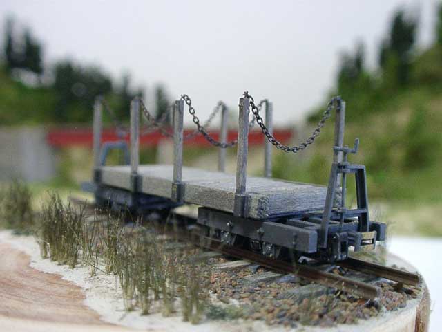![]() 2003/05/09 もりこー様 前略 かねてから計画していた木片専用車が完成しましたので、写真を送ります。木製運材車に角棒とバルサの本体をのせたものです。 難しいのはステイクポストで、すっきりとできませんでした。キットの発売が楽しみです。 もりこー:一足先に木片車を仕上げてしまいましたねえ。自作車ならではの良さが滲み出ている、素晴らしい出来ですね、皆さん。カプラーヘッドが擦れて塗装が禿げている感じや、機関庫の基礎コンクリのコーナーが欠けている部分の再現なんか、実物の観察が鋭いですね。
