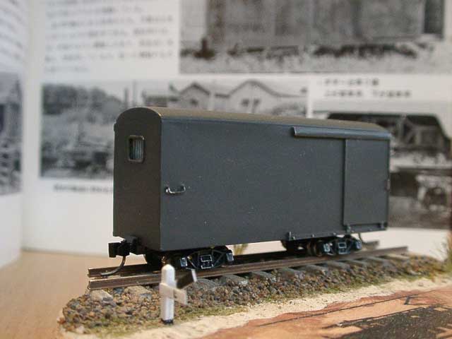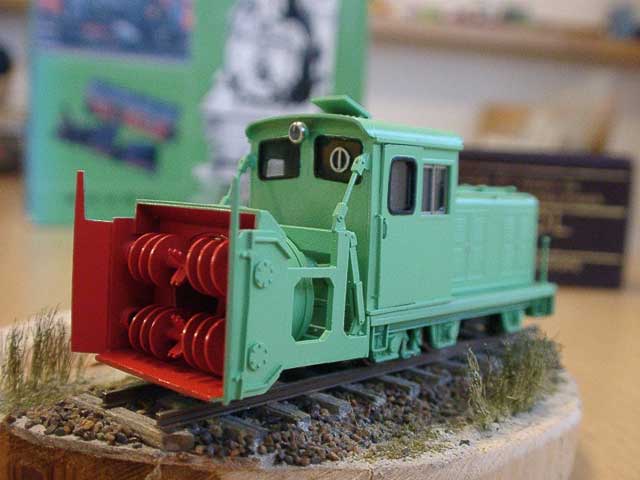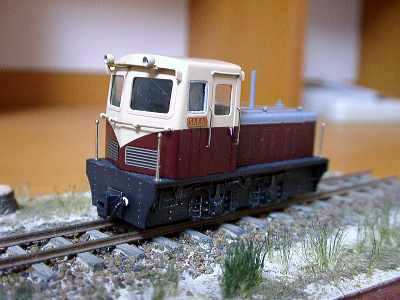 ![]() 2003/01/29 もりこー様 前略 実に4年以上の時を経て、浜中のロータリーDLが完成しましたので写真をお送りします。 塗装はいつもの通りプラ用塗料で黄色+スカイブルー+白です。順序は、ロータリー部分の赤を先に塗ってみましたが、マスキング部分が少なくて済み案外うまくいきました。 もう一枚は「問寒別の"別"の有蓋車」と名付けた自作の有蓋車で、プロトタイプはナローゲージモデリング掲載の扉が端によったタイプです。材料はすべてプラ板。アーチバー台車はNゲージ用で車輪を3.8ミリに交換しました。 もりこー:こういった角度で撮影すると、ロータリーDLも立派に見えますね。有蓋貨車も不気味な雰囲気でイイ味を出しています。流石です。