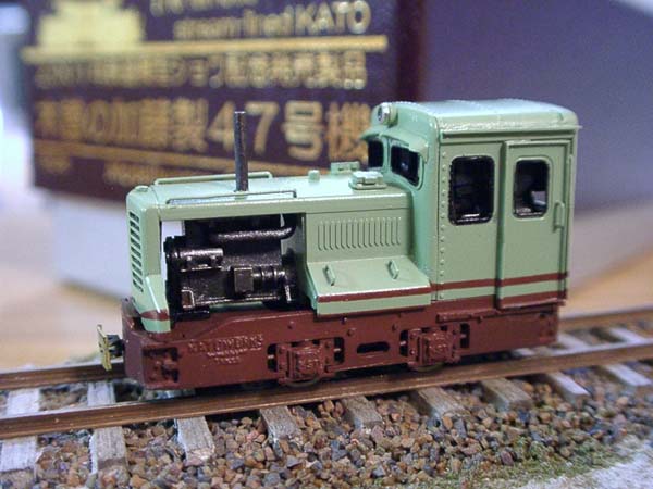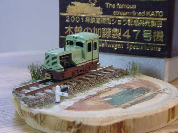 ![]() 2002/11/29 前略 もりこー様 木曽の加藤製47号機が塗りあがりましたので、写真を送らせて頂きます。キャブがとても小さくて、こてが入らず、こて・・誤・・てこずったので、小型バーナーを併用しました。 次のカブース、ゴンドラ、小型有蓋車が完成間近になりました。追ってご報告致します。 もりこー:おー、半年振りに送ってくださったメール。なかなかの出来栄えですねえ。それにお立ち台も相変わらず付いて。こういう上で撮影すると、雰囲気が盛り上がります。