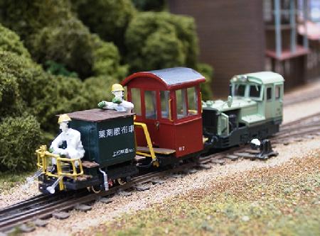 2004/08/31 もりこー:平田さんの「春の助六谷」の2回目。ご自身により解説をして頂きます。こちらを御覧下さい。 2004/08/08 もりこー:今月20日〜22日に開催されるJAMに、木曽モジュール倶楽部の一員として参加される平田さんは、搬入係のボクのところに新作モジュールを持参されました。そこで搬入までの時間を使って、徹底取材してみましたので、どうぞこちらを御覧下さい。 2004/03/12 もりこー:先日、平田さんが雪山のアルプスを越えて(本当はトンネルを潜ってですが)高山から遊びに来られました。持参された風呂敷を解くと、そこは温暖な静岡のジオラマの世界が拡がっていました。ではこちらを御覧下さい。 2003/09/11 早くも山々は色づいてきました。A型貨車に荷物をいっぱいに積んで滝越の平沢デパートや合宿所へ食料品や日用品を運んでいきます。特製のダンボール箱に、にんにくの網袋をかぶせました。 もりこー:にんにくの網とは考えましたねエ。昨日のお店といい今回といい、ダンボール箱が効いています。