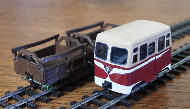 2001/11/01 C木曾の酒井製モーターカー 説明書通りに組み立て、かわいらしく仕上がりました。 D木曾の酒井製モーターカーU 赤のラインにWAVEのデカールを使用しました。 E木曾の酒井製ボギーDL 何度かの塗装のやり直しを経て完成しました。 台車は黒染めで、屋根はグレー塗装としました。 F木曾の非常車 乗工社のC型客車に「非常車」のインレタを貼り、木床としました。