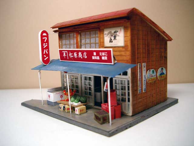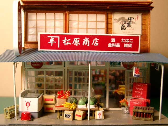 2003/09/10 こんばんは平田です。今月は取材旅行とのこと、新しい企画を楽しみにしています。 久しぶりに「皆さんの工作台から」用の写真を送ります。6月に木曽モジュール倶楽部に入会して、今は木曽森林鉄道にはまっています。 会員の皆さんのほとんどは森林と渓谷の風景を製作されていますが、私のモジュールは上松停車場です。このテーマを選んだ理由は先日久しぶりに上松を訪れたところ懐かしい風景が残っており、思い出の情景を再現したいと思ったからです。「みやま号」に乗車したホーム、なんでも屋さん・・・松原商店が完成に近づいてきました。お店の看板、商品などパソコンを駆使して作っています。開店までにはもっと商品をそろえなくてはなりません。MWの酒箱はどこにあるかわかりますか?店先の平台の支えになってます。 現状の写真も添えておきます。 もりこー:そうなんです。平田さんは他の方々とは違って、町風景を再現しています。でも、これも木曽森林鉄道のひとこまなんですよネ。