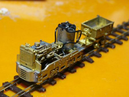 2010/10/31 4.木曽の砂利運搬車 冒頭に書いたとおり、酒井10tDL 124号機と共に木曽物ファンにしてくれた張本人です。製品紹介を見て最初に思ったのは、これを走らせたい。ディスプレイ専用だと、なんだか惜しい気がしてしまったのです。それから組立講座が掲載されて思ったのが、ダンプさせたい。せっかくヒンジが作りこまれているので、カタンと倒してザラザラーっとばら撒いて、などと考えました。 先にヒンジの加工が出来上がりました。ヒンジピンが収縮誤差でうまく収まらずに折れてしまったのを機に真鍮線で再生し、受け側も穴をドリルでさらう、隙間を金ノコで削って拡げるといった加工を施し、傾ければカパッと開きます。ロックバーも別パーツ化されているので、極端にオモチャっぽくならないように留意しつつ可動式にしてみたいところです。 それにしても、このバケットが1パーツ構成というのは驚きです。これまで見てきたロストパーツといったら、曲げやプレス、エッチングでは表現の難しい立体パーツ程度のものしか見たことが無く、細かなヒンジや側面のフックまでもが一体成型というのは、これまで型割の関係で一体化に制約を受けやすいプラキットに馴染んできただけに意外でした。これほど入り組んだパーツ自体見たことが無く、貴社の技術の高さが実感できる一品だと思います。バケット底面だけは面が乱れていたので、ハンダを流してツルツルに削り込んでみました。ベコベコな底を表現したのだったらゴメンナサイ。おっと、バケットの内側にもフック裏のリベットが。危ない危ない。 走行対応については、あの手この手と色々と考えて行き着いたのが、ABS樹脂から車軸を削りだすことでした。ただのABS材を売っている店はそうそう無いので、我が家に大量に住まうロボットのプラモデルからABSパーツのランナーを分けてもらいました。そのままでは太すぎるので、適当に竹割で4分割した後、リューターに咥えて簡易旋盤加工。付属の金属車軸と同じくらいまで削り込み、車輪が嵌る部分は軽く留まるくらいに段落とし。車輪は付属のシャフトでリューターに留め、踏面・フランジをヤスリ磨き。裏面も削り込んでバックゲージの調整をしたら、台枠に嵌めてみます。ブレーキシューが盛大に当たる個体だったので、根元から反らせ、シュー裏側・摩擦面の削りこみで車輪から離してショートしないように加工していきました。まだ完全には絶縁できていないのですが、後は塗装で何とかなると考えています。 そういえば、今年発売の新製品で唯一形にした車です。ということは…。 ![]() ![]() ![]() 5.木曽の酒井7tDL 84号機 こちらは5t 74号機の落下事故後にオークションで落札したものです。当面完成させられないからと、代わりになる車を手配したかったというところです。ようやく形になった砂利運搬車の走行テストをするべく、先週から突貫で下回りを組み上げました。ディテールパーツは付けていませんが、走行可能な状態になるところまでは組んであります。ラジエターは5t機と違ってギアフレームの固定に必要なものではなく、気分で付けた飾りです。結局この車も組み立て中に部品を壊してしまい、軸箱もなぜか回転が渋くなる症状が出て、仕掛品になりかけたのですが、幸いにも同じ7t 107号機が最近転入しており、こちらから補充して事なきを得ました。 幾分古い製品ゆえにコの字ドローバーが付属していたのも幸いでした。なぜかずっと今までピン&リンクを買っていなかったのです。まだ上回りの無いどこかの簡易移動機みたいな風体ですが、試運転中の砂利運搬車の先導役を務めています。 ![]() 我が家で今手がけているものはこういったところです。欠損部品発注は近いうちに車両補充と併せてしようと思っています。手付かずの井笠シリーズ、近日中には取り掛かります! 長文となってしまい、申し訳ありません。今後も意欲的な開発に期待しています! 組み立てを失敗したり無くしてしまったパーツは在庫がある限り分売しておりますので、伊藤Mさん、心置きなく御請求下さい。皆さんも御安心下さいネ(^^♪。(もりこー) 2010/10/29 森川様 井笠シリーズ発売以来お世話になっております。大阪の伊藤です。 井笠に混じって発売された木曽シリーズに手をつけるようになって以来、中古市場で酒井DLなどを買い集めるようになり、井笠だけのつもりがすっかり木曽のファンになってしまいました。仕掛品の恥ずかしいものばかりですが、ご覧に入れたいと思います。 1.明延のわかば号 もう13年も前の古い製品ですね。まだ炭鉱・簡易軌道シリーズが主力だった頃でしょうか。当方が初めてモデルワーゲンの名を知った、今に連なる第一歩となった思い出の一品です。別の記事が縁で購入した模型雑誌の新製品コーナーで知りました。ナローのキットとしては決して高価ではないものの、当時まだ高校生で、小遣い銭では到底買える額ではなく、泣く泣くあきらめた後、そのまま