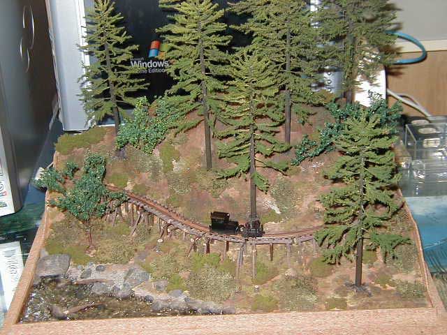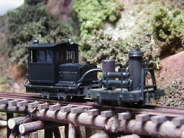 ![]() 2003/02/11 森川様 こんばんわ。木曽のホイットコムが完成しましたので、ご報告します。いやー チッサイです。カワイイです。よく走ります(スローもバッチリです)。 皆さん、色々自分なりのホイットコムに仕上げていると思いますが、私は、戦時型と言いますか、木炭ガス発生装置を繋げた姿を再現してみました。木製運材台車を利用して木炭ガス発生装置を作ってみましたが、いかがでしょうか?なにせ、昭和36年生まれの自分は、実物を見たこともなく、知識もないので数少ない写真や木炭自動車の資料を基に想像でまとめてみました。機関車と台車は、ビニールパイプで繋げましたが、このままではカーブがチョットきついかな?森川様 良い案はないですか? ちなみに、撮影に使ったジオラマは、正月休みに作った木曽の作業軌道をイメージした物です。 早い、上手い、面白い、の三拍子揃った作品に感服しました。それと、前回予告されていたジオラマも、ちゃんとモノにされている。模型趣味を謳歌されていますネ。それはそうと、このパイプの件、どなたか良いアイデアはありませんか?ございましたら、もりこー宛にメールして下さい。(もりこー)