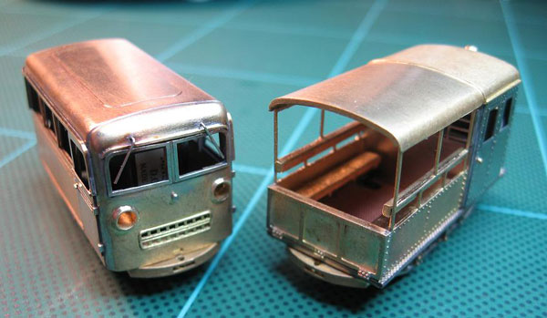 2007/03/28 モデルワーゲン森川様、愛知豊橋在住の加藤です。いつもお世話になります。 お蔭様で、今月、モーターカーV・W(共に未塗装品)が完成しましたので、報告いたします。モーターカーV・W共に、ほぼ図面どおりに製作したつもりですが、モーターカーWについては、今後の追加作業(電球付け、DCC化等)を考慮し、一部ゴムボンドで接着している個所があります。 これからも時間が許す限り「ハンダ付け」(主にモデルワーゲンさん商品で)をやっていこうと思います。どうか、よろしくお願いいたします。 相変わらずカチッとした仕上がりですね!性格が出てるのかな?ボクも見習わなきゃ、です。ボクの設計した製品が、このように仕上げられて写真が送られてくると、ホントにメーカー冥利に尽きます。感謝。(もりこー) ![]() ![]() 2007/01/10 モデルワーゲン森川様 あけまして、おめでとうございます。 本年もよろしくお願いいたします。愛知の加藤です。いつもお世話になっております。 お蔭様で、今年元旦にガソ101(未塗装状態)が完成しました。部品の脱着を何度も繰り返し(すこし指先に火傷もし)、ほぼ設計図どおりに組み立てることが出来ました。真鍮品の組立は、プラモデルと違い、何度もやり直しがきくのが大きな長所ですね。 ハンダ付けは、中学生の頃にラジオ製作をして以来、超長い間ご無沙汰しており、当初は不安でいっぱいだったのですが、一度やりだしてみると、結構面白いものであることが分かりました。 これからも時間が許す限り「ハンダ付け」(主にモデルワーゲンさん商品で)をやっていこうと思います。どうか、よろしくお願いいたします。 とても中学以来、しかも配線の半田付けしかやったことがない、という風には見えませんね!凄い腕前と見た!この調子で今年も行きましょう!(もりこー) ![]() ![]() |