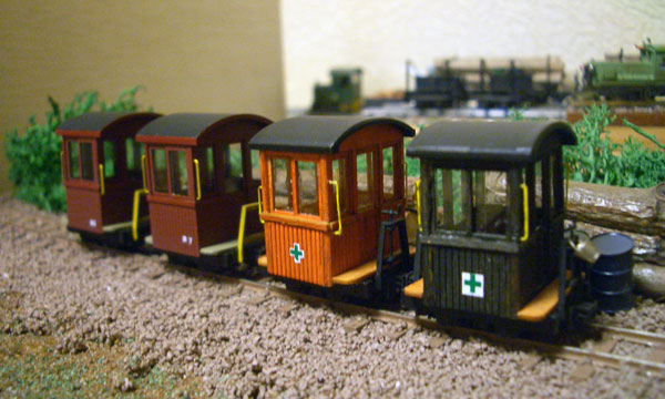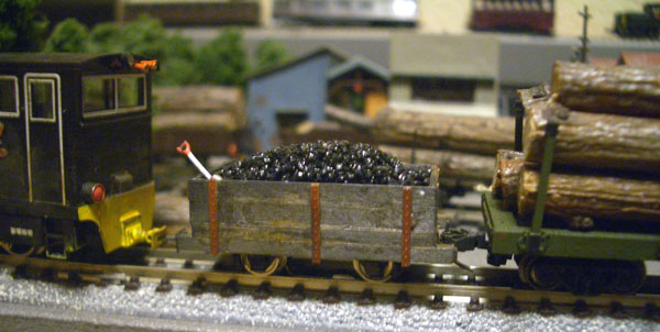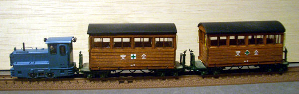 2011/04/27 森川様。ご無沙汰しております。E型客車に井笠のホワの台車を取り付け、ボギー化しました。 木曽も井笠も終焉を迎え、某軽便鉄道会社が引き取り、使える部品を組み合わせて作った有蓋車・・・です(笑)。 スポーク車輪とムキ感に自己満足しています。また、よろしくお願いします。 なかなか面白いアイデアじゃないですか。惜しむらくはセンターピン間をもう少し長くした方が安定感が出たでしょうが、カプラーとの干渉の問題もあるのかな?意外とボクもこういう感じが好きだったりします(^^♪。(もりこー) ![]() ![]() ![]() 2008/12/19 森川様 こんばんは。こんばんは。B客V完成しました。いつもながら、粗だらけで遠山から青森に来たという設定です(汗)台車は湘南グリーン、屋根はジャーマングレー、車体は墨汁の黒&朱色を混ぜて塗りました。 栂鉄様を訪問して、大畑が牽引するセタの撮影をしてきました。自己満足ですが、似合うと思います。(風景が素晴らしいです。) お!出来ましたね!なかなかイイ感じに仕上がったじゃないですか!機関車の+マークもまた似合ってますし(^O^)。(もりこー) ![]() ![]() ![]() 2008/08/27 森川様 こんばんは。檜材で貨車を製作しました。石炭積載の無蓋車(KD&沼尻カプラー)チキ?(木片のステイクだけが最高!)の様なボギー車&2軸車(KD&小関に合う高さのカプラー)小関の即席無蓋車&ボサ箱?・・・。知識が無いので、ワールドDC12にキャブフォワードの排気管、2連のタイフォンを装着・・・カプラー変換?の貨車により、自由(適当)に沼尻、木曽、馬路・・・を組み合わせて、運転を楽しむことができました・・・。 木曽のB客、利根河原のKATOが楽しみです!それでは、また! 相変わらずエネルギッシュ!しかし、DC12に排気管マフラーを付けた姿は、なかなかカッコイイですね(^^♪。(もりこー) ![]() ![]() ![]() ![]() 2008/06/25 森川様 こんばんは。小関式は5ペアありますが、1ペアをステイクポストに糸で丸棒を巻きつけ、木片?的にしてみました。RM LIBRARYの中の写真を参考にしました。1ペアは木曽のゴンドラのような、ボサ箱を作ろうと思っています。それでは、また! 河合さんの勢いは留まることを知らないようで(^^ゞ、しかも着想が面白い!イメージはあったものの、こうして三次元になってみると、作りたくなってしまいますね!(もりこー) ![]() ![]() 2008/06/18 森川様 こんばんは。セタ&セタUができました。 相変わらず、ヘタクソですが、瞬着で組み立て完了!転がりも良く、開放テコに感動しました! さて、今回私がヤリタカッタのは、ワフ3のように青色に仕上げることでした。GM42伊豆急ブルーで塗装しました(タミヤで適当にウェザリングしています。)。ワフはワールド製です。DC12が早く再生産されますように!その前に青森の協三4,8tに引かせるつもりです。セタ用硫黄も荷台にピッタリ!後ろに見えるアルモデルボギーに、分売していただいた8tボギーのライトを装着しました。それでは、また! 快調にモデルライフを楽しんでおられる様子が伝わってきますね(^^♪。こうやって見ると、固定概念にとらわれずに自由な発想で色を楽しむのも、また楽しからずや、といった感じです!(もりこー) ![]() ![]() 2008/05/23 森川様 おはようございます。カブースV出来上がりました。ハンダもできず、不器用な私ですが何とか形になり、転がりも良く走ります。 シナベニヤの部分は、筆も無く、缶スプレーの経験しか無く、悩みましたが、墨汁の黒、朱色を水で薄めて塗り、安全マークを貼りました。屋根は接着不要でした。人形の乗せ換えが自由にできますね。デッキ部分は朱色を薄く塗ってあります。木曽に拘らず国鉄のヨ5000のように活躍させるつもりです。 4月の訪問時には、お世話になりました。軽便祭、機関庫が楽しみです。(長浦さんの凸型DL素晴らしいですね!) 河合さんは最近からウチの製品をお求めになられ始め、実車にとらわれずに自由にナローを楽しんでおられる方です。安全マークを貼ると、何だか秋田みたいな感じに仕上がり、面白いものですね(^^♪。(もりこー) ![]() ![]() ![]() |