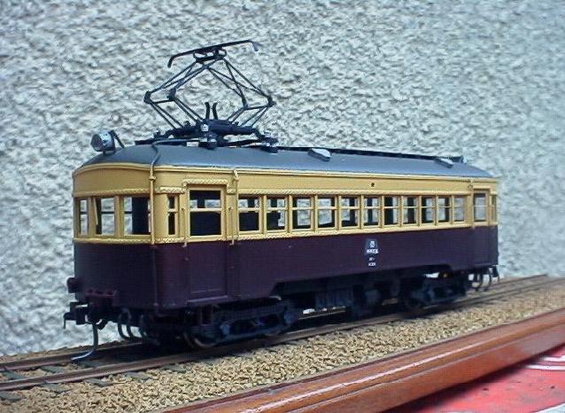 2002/09/07 森川様 こんばんは、木下です。このたび、廻澤交通瀬羽間線に無蓋車「ト21」を導入しました。 車体は全てプラシートで、床板はt1のプレーンシート、側板と床板はエバーグリーン社の2mm間隔の筋目板から製作しました。サイズは御社の「有蓋貨車ワ」に合わせてあります(有蓋貨車の床板から採寸して製作しました)。 下回りは御社の貨車用下回りパーツ類を利用しました。ディテールアップパーツとして、16番用の貨車用票指しとφ0.3真鍮線で手すりをつけました。塗装はつや消し黒で、インレタは16番貨車キットのものを利用しました。社紋は前回同様、Nゲージ用のものを利用しています。 塗装を除けば車体は1日で十分完成させることができました。それにしてもこういう小型貨車っていいですね。 こういった貨車というのは、何両あってもイイですよね。ふと思いついた時に作っておくと着実に増えていきます。(もりこー) ![]() 2002/03/30 こんにちは、木下です。安曇野通信も毎月、楽しく拝読させていただいております。 素晴らしい出来と、なんとも愛らしいスタイルに惚れ惚れしてしまった「蒲原/庄内のモハ」のオーダーメード版の車両を、「廻澤交通 瀬羽間(せばま)線」として正式に導入いたしました。 車両は現時点で3両で、「モハ101」「モハ111」「モハ121」と付番しました。(現在、再生産のオーダーメードを2両発注しています。これは「モハ131」と「モハ132」に付番される予定です。)当鉄道には他に、以前購入したワフ(通風器つき)程度ですが、そのうち機関車(松本のウエスチングハウス)あたりも欲しいところですね。 社紋及び鉄道名は、Nゲージ用に作成していたデカールを使用しました。社紋は「めぐりさわ」の「め」の字をデザインしたものです。お立ち台は松川詠一さん作の展示台です。 他の皆様のように高度な加工をしたわけではないので、恥ずかしい限りですが、車番と社紋が入っただけで、車両が生きてくるものですね。 こんな内容でよろしければ、「皆さんの工作台から」へ記載してやってください。 イメージを膨らませる作業というのは、楽しいものですよね。木下さんはいわゆるNゲージからの転向組さんなのですが、今回のスペシャルオーダーを上手く利用されて、木下さんだけのモデルを手に入れられました。皆さんもXX鉄道や△△交通のオーナーになられたら?(もりこー)