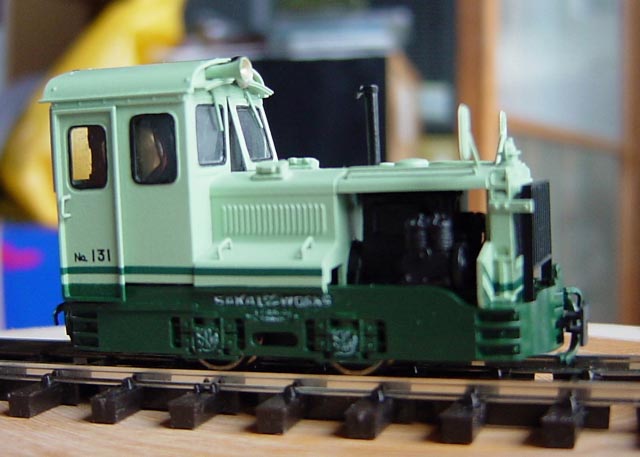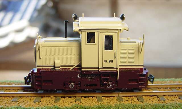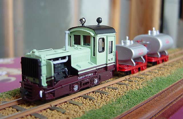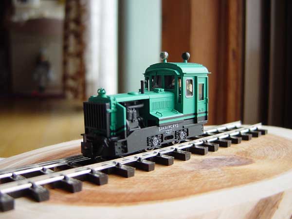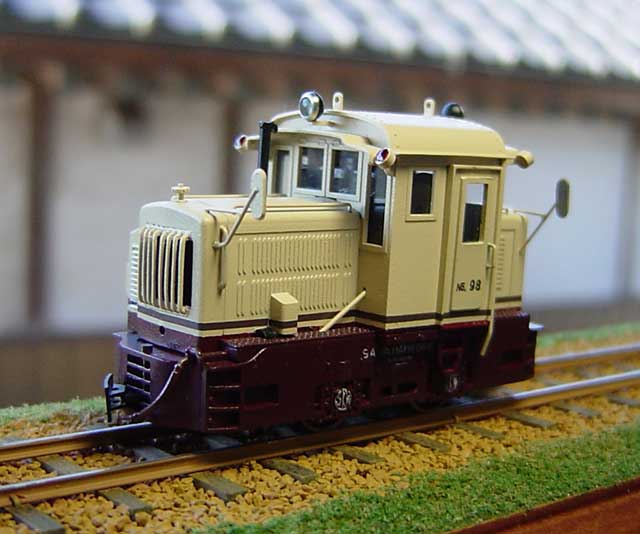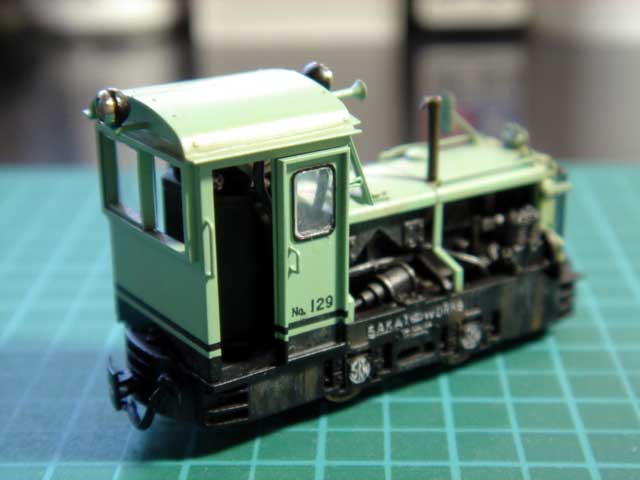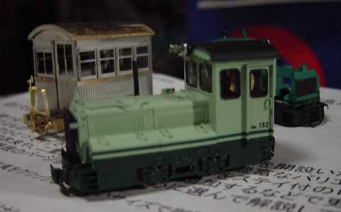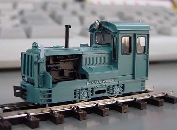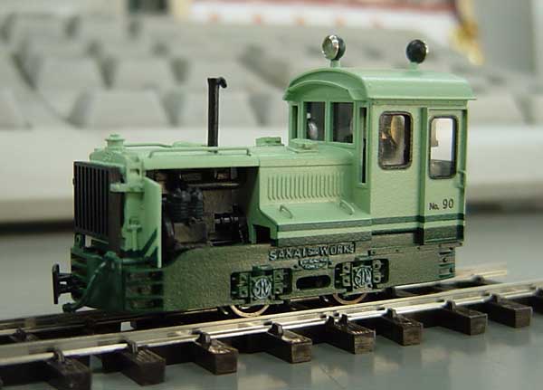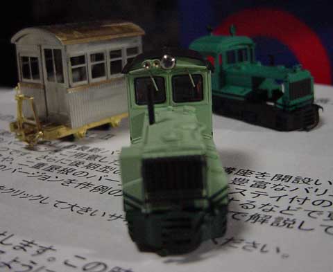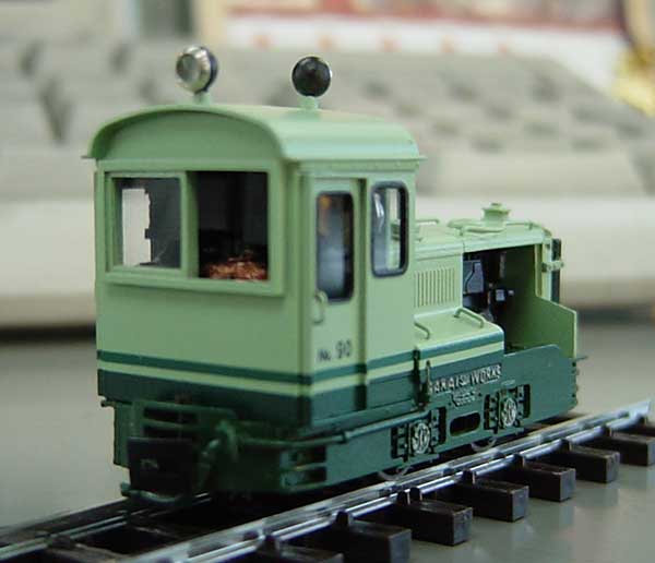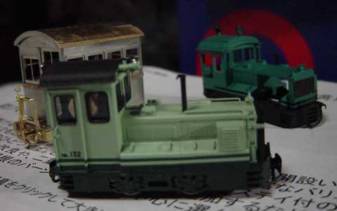 ![]() 2002/12/04 森川様 こんにちわ。おかげさまで「90号機」組立て上がりました。ボンネット内に取り付けたタイフォン思った以上に太くて目立ちます。男らしくて気に入っています。 今回の「90号機」は、後窓枠2枚で組立てました。(しかも、片方の窓枠を削り落として開けた状態にしました。)森川さんの所でもリンクしているアンクルフックさんのHP上のカラーグラビアに田島で入換作業をしている「90号機」(「129号機」も。)が有ります。後窓枠2枚です。この写真のインパクトが強くて窓を開けてしまいました。 僕も巻本さんの9/9に有る写真は、「90号機」だと思います。コンプレッサーカバーの高さや、角度に特徴が有ります。あれって放置されているんでしょうか?放置機関車?寂しいですね。 これは、初めて造った「助六の酒井・前期型」を「助六の酒井・U」の部品を使い、今の自分のレベルで造り直した物です。加工ポイントです。 @ワイパーの撤去。 A空気配管の追加。 Bコンプレッサーカバーの延長。 Cボンネット内タイフォンの追加。 D後窓を2枚に変更。 あとは、細かい所をチョコチョコと。 アンクルフックさんのカラーグラビアがインパクト強くて後ろの窓枠片方削って開けちゃいました。(運転手のおじさんを乗せたいのですが、羽子板みたいになっちゃいそうです。) 何とか人形を乗せたいですけど、難しいんですよねエ。窓ガラスの内側に絵を描く訳にはいかないし・・・(もりこー)