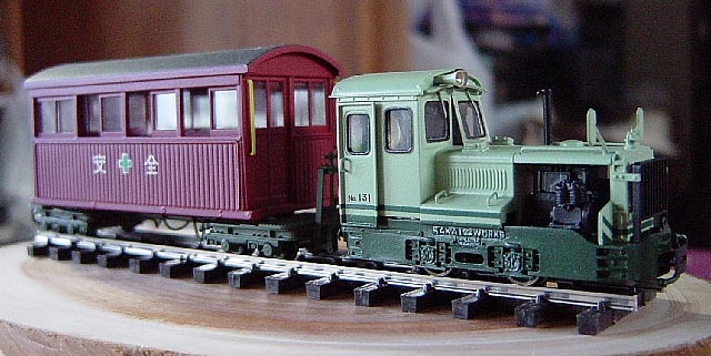 ![]() 2002/10/09 森川様 こんにちわ。 今日は休日出勤で出社しています。ただし、事務所は僕一人しかいないので、昨日の夜仕上がった「やまばとDL」の写真を撮って送ります(王滝村のマーク?は、まだ付けていません)。 今回のポイントは、何と言ってもオイルクーラー周りの工作です。配管の追加、保護枠のカバー?も追加しました。保護枠への穴あけを含めて多分、実車通りだと思います(流石に、リベットは省略しています)。その他は、エアーホースの移動、前面窓のプラ板はめこみです。 ウーン、結構完成までかかってしまいました。写真だと良く判りませんが、明かりを当てて保護枠の奥を近くで見ると、結構いけてます。 話は変わりますが、今回の「富士重工製のモーターカー」あの大きさで自走するとは思いませんでした。ビックリです。そこで思ったのですが、動力周りを、「岩崎レールのモーターカー」に転用できないのでしょうか?幌は、自作するとして(せっかくの内装が見えなくなりますが)。難しいかな? 意見を聞かせて下さい。可能だとして動力周りのパーツの分売を含めてお願いします。 昨日、「ウグイ川線の情景」が届きました。待ちに待ったジオラマでしたので、家に帰るのを待てずに昼休みに梱包を解き早速眺めました。やっぱり良いですね。購入して良かったです。家に帰ったら、アレを載せよう、コレを載せよう考えていましたが、相変わらず仕事が忙しく帰宅が遅くなり、宅急便の箱のまま部屋の片隅に。今日こそ明るい所へ出してお気に入りの車輌を載せて楽しみます。 素晴らしいの一言です。撮影もバッチシだし、僕が言うべき事はもうありません。実物を早く見たいものです。11月のミーティングを楽しみにしています。モーターカーの動力装置については、検討してみます。(もりこー)