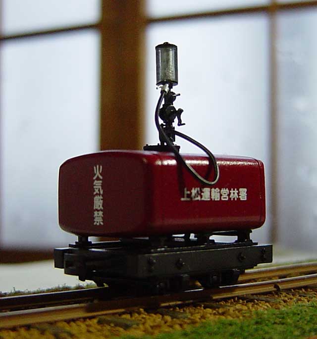 ![]() 2002/12/29 森川様 おはよう御座います。「感謝DAY」の時に宣言した通り、赤い『ガソ計車』が出来ましたので報告します。 工作はストレートです。塗装は、タンク部のみお馴染みの「長電ファーストレッド」。後は、黒を塗っただけです。インレタは、イモン製です。ポンプ部のディティールにはしびれました。 どうでしょうか?自分では「なかなか良い感じ。」と満足しています。 実車の色はともかく、田島に係留される前は、さもありなん、といった感じでイイですねえ。(もりこー)