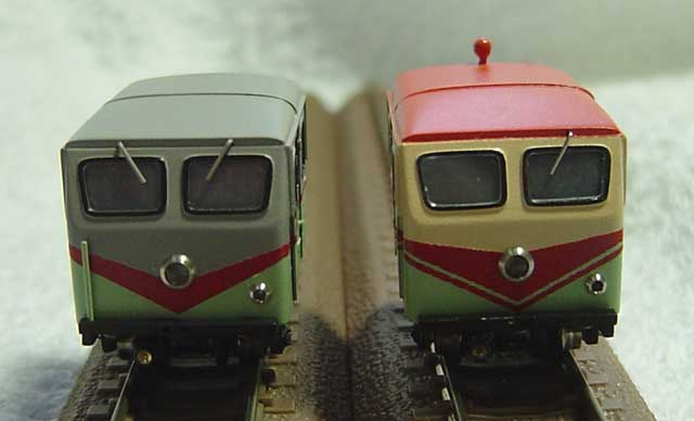 ![]() 2005/03/04 森川様 おはようございます。協三141、ようやく出来上がりました。以前から森川さんと話をしていた近鉄マルーンは、こうして塗ってみるとやはり正解でしたね。この141の特徴ですし・・・。協三のキットは組み易さでは、歴代木曽シリーズでも一番のような気がしました。もう一両組みたくなってきました、金太郎塗りの奴を・・・。 このように今回のポイントは、車体色です。この141号機だけに見られる赤みの強いマルーン。追加加工としては、キャブドア廻りの手摺(3本有り、全て長さが違います)、ワイパーにエコー製エッチング部品を使った程度です。ボンネット上の2灯は色違いです(^^) 調子に乗って126号機、早速作り始めてます。やっぱり、Hゴム窓で行きたいと思います。引き違い窓の枠を削り落としました。窓を貼る時、ガイドになるべきヒンジのモールドが無いので位置決めに少し苦労しましたが。 ボンネットは、あっと言う間ですね。 出来上がりましたねえ、近鉄マルーンの141。この色に塗ったきっかけは、ウチのCD-ROMに掲載されている実車のカラーだったとか(右下に転載・かなり大きさを落としてありますが)。僕も見本の上まわりをシンナーに入れたくなってしまいました(見本を塗る前にこのカラー写真が入手できていたらなあ・・・)。しかも、この写真からライトケースの色の違いまで見抜くとは!!カプラーヘッドの色も渋いです。126もどんなに仕上がるか、楽しみ(^Q~)(もりこー)