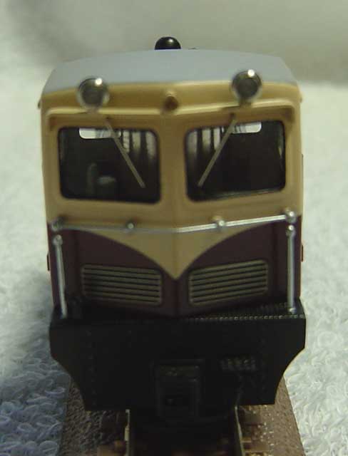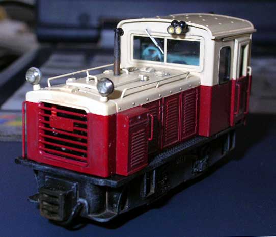 ![]() 2003/01/15 森川様 おはようございます。昨年の「感謝DAY」以降、工作を進めてきた凸型DLが出来上がりましたので写真を送ります。まずは『98号機』です。上松での晩年の姿を想像を交えて作りました。 @前後のボンネットにバックミラーを追加。 Aボンネットサイドに小さなカバーを追加。 B後ボンネット上にトサカ?を追加。 Cキャブは、砂撒き管とドア脇の雨樋を追加。 Dキャブの日差しには作業灯を4箇所に。(何で斜め上向き?) Eランボードは、網目板に交換。 F公式側?のステップ形状も変更しています。(両搾り型) 自分では、かなり満足しています。