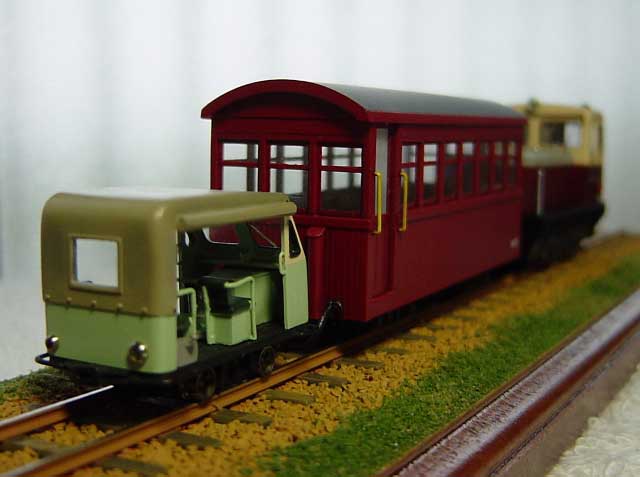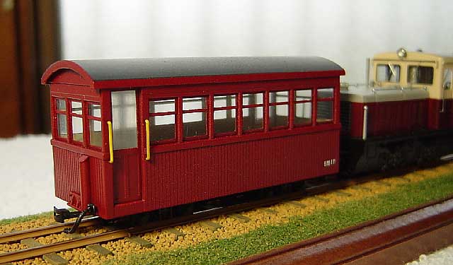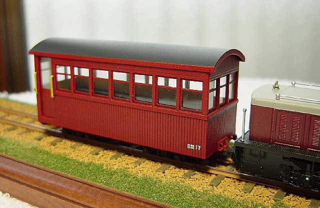 ![]() 2003/04/26 森川様 こんにちは。 昨日『B型17』完成しました。今回の『B型17』は室内をクリームに塗って、椅子を黒にしました。『C型5』の時は、余り上手くいかず中途半端に終わったのですが今回のは満足しています(別のところで多少のトラブルが有って表面が少し厚塗りで梨地になってしまいましたが…)。台車の転がりも抜群ですね。 こういった一見簡単そうな箱モノをビシッと組み立てるのは、案外技術が必要なんです。それが出来ているのは流石です。(もりこー)