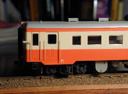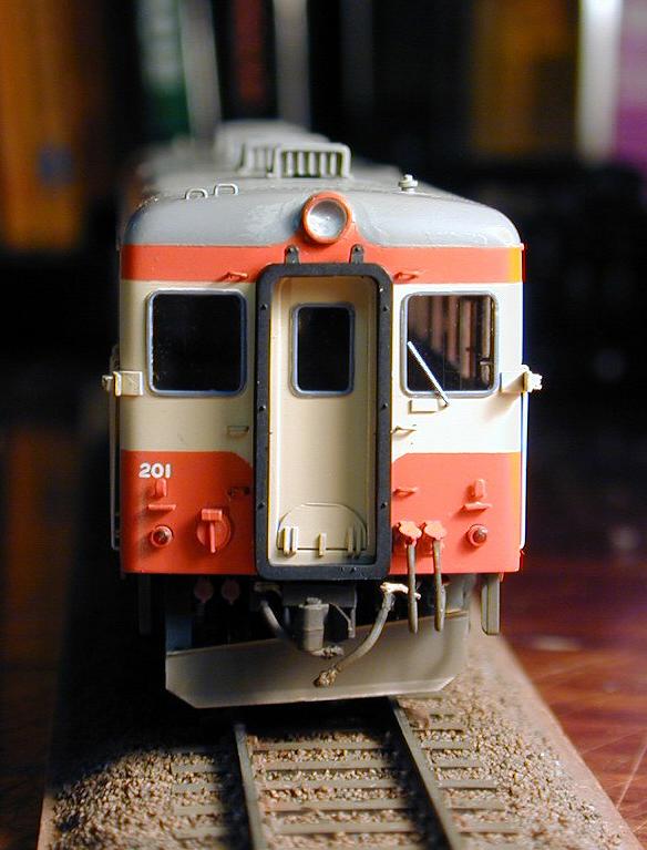 2001/11/15 森川さん、こんにちは。ずーっと昔に購入しておきながら、そのままになっていたチキ3000を組んで見ました。 先週末、模型ショーから帰宅し、あまり時間がないのですが、急に真鍮工作がしたくなり、ちょうど良い対象として一気に組みました。そして折角のチキなので荷物は木材・・・さてどうするか・・・色々考えましたが、庭にある植木を拝借・・・ 木材は「つつじ」です。適当な太さの枝を切って(根元の半分枯れ掛かっている部分が良いのでは?)、早く荷物を仕上げたいので、水分を飛ばすためにフライパンであぶり、ちょっと塗装で感じを出し・・・などして仕上げたものです。結構自分では実物写真と比べて感じが出ていると思っているのですが。それでは、また。 もりこー:もうかれこれ25年程前、ようやく仕上がったEF16を塗装しようと、最後の洗浄をして早く乾かそうとして、オーブンレンジに入れトイレから帰ってみたら、皿の上にバラキット状態になっていたのを思い出しました。皆さん気を付けましょうネ。 ![]() 2001/05/09 もりこー:元綱さんと初めてお会いしたのは、彼がまだ大学院生だった頃で「とれいん1990-7(No.187)」の対談ででした。それ以降、何度も雑誌に作品を発表されたり、昨年のJAMでは講演までしてしまう、という出世ぶりです。キハ22、イイ味出してますねエ。 森川様 今晩は。元綱です。やっとキハ22が出来ました。 小学校の時に大沼公園から函館まで乗った単行の普通列車のイメージで仕上げてみました。あとは、室内、ワイパー、ライトをMVレンズor点灯式に・・・などで完成です。 キットを加工した個所は、 ・ベンチレータの配置を写真を見ながら変更。 ・台車の幅を動力側、トレーラ側で合わせる。 ・屋根上の排気管(って言うのでしょうか)の追加。 ・屋根上の手すりの追加 といったところでしょうか。それでは、又・・・・
