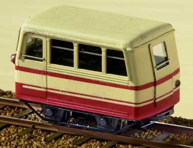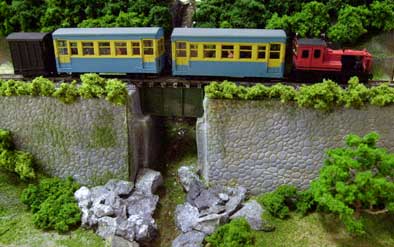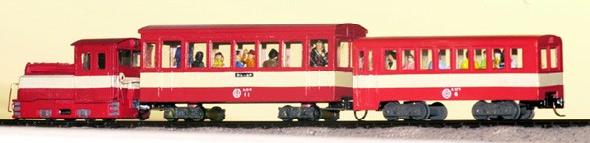 ![]() 2002/01/18 もりこー様こんにちは。毎日HPを楽しみにしている神戸の奥と申します。ワーゲン製品はHOjを中心に集めてきたのですが、最近の怒涛の?木曽シリーズ製品化にHOeの勢力分布も増えつつあります。もともと小型車志向なので琴線に触れる製品が出るたび財布のひもが…。 実は黒川さんの作品を見て、私もかつて問寒別の有蓋貨車で大井川のワフのような貨車ができないかと思い模型店の在庫を探し回ったことを思い出し、今回メールするきっかけとなったのです。結局キットが見つからず完成品を手に入れましたが、さすがにもったいなくてそのまま持っているのですが…。 私のHOj入門のきっかけとなった乗工社の大井川鉄道井川線のDB1につなげる客車。HPで「問寒別のボギー客車のキット組立て講座」を見ていてふと思いつき、改軌して作ってみることにしました。ドア配置は反対ですが実物のスロフ1をイメージして、屋根のヒサシ部分をカット。ジャンパ栓や屋根上の手すり用穴をふさぎ、妻面によろい戸式ベンチレーター用の四角穴をあけ、ドアーの無いほうのボディー裾をアングルごとカット。これで上回りの加工は終わり。 実物のスロフ1も1067mm軌間では日本最小のミニ客車ということでしたが、さすがに簡易軌道の客車はそれ以上に小さいようで、車体幅が狭く、9ミリから12ミリに改軌した台車は車体幅いっぱい。ショートを避けるため、台車の当たるドア側の裾も一部カット。ボルスターにワッシャをかませ1ミリ車体高をかさ上げ。簡単な改造のつもりでしたが、案外手間がかかりました。井川線の塗装をほどこし、レタリングをするとそれらしく見えてきたようですがいかがでしょうか。ただ小型車ゆえ他の車両と編成を組むとちょっと背が低い感じです。車内に椅子と乗客を乗せて以前製作した乗工社の丸瀬布(木曽王滝B14号客車)をつなげ、小編成を楽しんでいます。 近く発売されるやまばと号にもかわいい乗客がついているということですが、やはり乗客が乗っている列車は生き生きとして見えますね。どんなものか楽しみにしています。 また面白いものができましたらメールします。今後の御社の製品とHP楽しみにしています。 面白いものですね、趣味というのは。黒川さんの作品がきっかけになるなんて。私が正月に作ったDBTを見て、模型屋の在庫をあたりました、というメールも数通届きました。(もりこー)