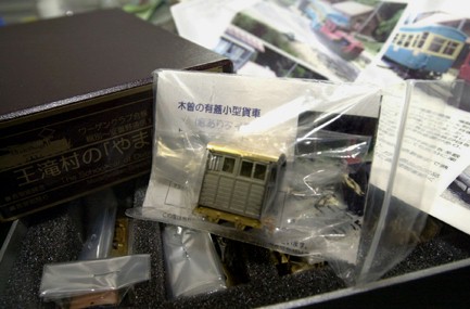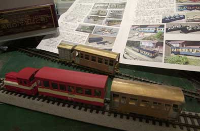 ![]() 2002/12/03 森川様こんばんわ。奥です。 先日は拙作を取り上げていただき有難うございました。 感謝DAYから帰り皆さんの作品や実物に触れ、製作意欲を沸かせております。とりあえず溜まった未着手茶箱を片付けるつもりです。手始めに木曽の酒井モーターカーの組立てから手をつけました。西野さんのHPにも掲載されている12ミリ改軌を真似させてもらいました。途中経過の写真を添付します。集電ブラシと台枠の処理、動輪の振れの有無が今後の課題か。ギアを入れ、モーターをつけて、塗装まで今月中に仕上げられるか。完成したらまた報告させていただきます。 頒布会のゴンドラやC客も組立てを待っているし、助六の5トン、98、47、富士重工74、75…。年内にこれだけ仕上げるのは無理かなあ。鬼が笑う頃にはまた新たな茶箱が増えそうだし…。 激動の?ここ数日の様ですが、御社の製品には期待しておりますのでこれまでにも増して応援させていただくつもりです。 ![]() 2002/11/17 森川様、こんにちわ。神戸の奥です。泊り勤務明けで会社におります。めっきり冷え込んできました。明日の感謝DAY。冬道素人の私はクルマでの移動がちょっと心配なのですが、まあ、雪道や路面凍結に出くわさないように祈るしかないようですね。一応「スノーネット」とか言うすべり止めをトランクに積んでいますがまだ装着したことが無いもので…。今晩までに練習しとかなくては。(でもこちらでは季節外れで恥ずかしい?) やまばと号の仕上げ作業も昨日までにほぼ終わり、後は王マークとサボをつけるだけになりました。 先日届いたウグイ川のジオラマに乗せて早速一枚=写真。でも、もう一つやることが…。相変わらずですが、台車を換えて、客車の12ミリ改軌を試みています。塗装前の写真でお見せします=写真。この時はカプラ-高さや転がりの悪さがあり、改良を加えてみました。明日(今日の午後)までに仕上げられるか微妙ですが、やるだけのことはやって、午前3時出発に備え寝不足にならないよう、20時には寝たいんだけど、どうなることやら。 本日の更新で掲載されたやまばと号の車内。現地で確かめる前に見れてしまいました。こちらも黒板やブレーキハンドル、笠立てもつけたい…。きりがないかな=写真。それでは明日、楽しみにしております。