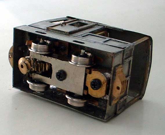 ![]() 2003/12/07 森川さんこんにちは 「助六の酒井製5tDLコンテスト」参加賞でいただいたモーターカーを動力化しましたので製作途中ですが写真をお送りします。塗装はなかなか上手になれないのでいつになることやら・・・・。このかわいい車体をどうしても動くようにしたくて頑張ってみました。 最近手に入るようになった小型モーターを運転室内に収めましたが、車輪(だるまやの6mm)の大きさから腰高になってしまいました。 騒音を出しますが機嫌よくレイアウトを走りまわるかわいいモーターカーはわが社のかわいいアイドルになるでしょう。 小埜寺さんはワーゲンクラブの会員さん。参加賞のモーターカーを、早くもここまで仕上げてしまいました。塗り上がりが楽しみですね。他の方々はどうなさったのかも興味がありますねエ。(もりこー)