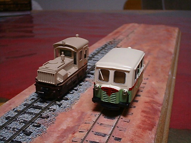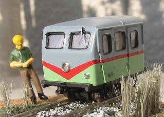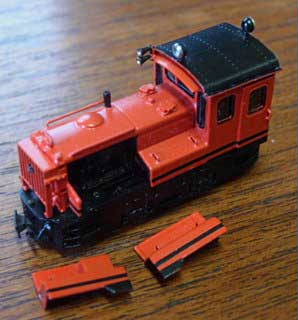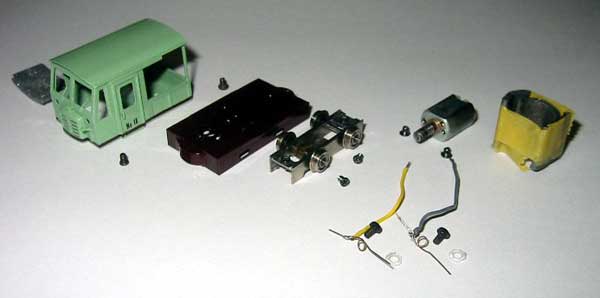 ![]() 2003/02/04 森川様 浜中のDLが完成いたしました。今回はS鉄道よりの組み立て依頼によるものです。簡易軌道の機関車ですが、注文が杉沢森林鉄道風ということなので、塗装も濃いグリーン、旋回窓も未装着の状態です。 さて、この機関車の伝動ギヤですが、世間一般常識ではオリジナルでは走らないということになっているようですが、オーナーから「素組、オリジナル伝動」という指令が出てしまいましたので、何とかやってみました。 とにかく、キットのままでは、ギヤーと第二動輪のフランジが当たってしまいますので、モーターの取付板をずらし、さらにワッシャーを入れてモーターを床板に取り付けました。(要は、ギヤーを後上方へ逃がしただけですが) 結果、スローの安定は抜群で、本当にあ歩くように走りますし、音にしても、もう少し走りこめば、もっと落ち着くのではないでしょうか。走らせて見て、愛着がわいてくる機関車と言った感じですね。 で、隣にホイットコムが写っていますが、ちょっとキャブだけ・・・と思っているうちに半田付けは、配線を除き全て終わってしまいました。 いやー凄く可愛い!!この調子だと2号機にも手を付けてしまいそうです。まだ、ギヤー関係は組んでいませんが、3号機は結構補重の余地もありそうだし、走りにも期待しています。(1号機も無理して頼んでおけばよかったかな。と少し後悔しています。) もりこー:浜中のDL出来ましたネ。実は2日付けの記事は、約一週間前に頂いていたものなのですが、こんなに早く出来上がるとは思っていなくって、ビックリしました。目新しい塗装が素敵です。あと、早いですねえ、ホイットコム。他の方からも「出来ました!!」というメールを何通か頂いておりますが、皆さん異口同音に「小さいですねエ」と。 ![]() 2003/02/02 森川様 ひょんなことから「浜中のDL」を組み始めました。 確かに、普通に組むとフランジとギヤが当たってしまうのですが、モーター取付板をずらし、ワッシャーを一枚かましたらクリアランスが取れるようになりました。しかし、このシステム、スローは最高ですね。酒井には組み込めないと思いますが、私は気に入ってしまいました。(ギヤ比を色々変えられる余地があるし、高速機、低速機が自由自在のような気がしました)またなにかの機会に採用いただけませんか?今週末は、なんとか90号機を・・・と思っています。 もりこー:このギヤーシステムは初段にスパーを持ってきたのがマズかったですね。でも、この超低速運転を味わってしまうと、虜になりそうでしょ。今後はこれを糧に何らかの改良をしてみます。 ![]() 2003/01/10 富士重工のモータカーが出来上がりました。はじめは森川さんの言われた通りぎっしりと鉛板を張り込んだのですが、空転ばかりで動きません。「前方に・・・」という言葉を思い出し、一度張ったウェイトをはがし、後ろ3分の一くらいをカットして張り直し、すると微かに動き出し、さらにはがして後部をカットすると何とか動き出しました。その後、集電ブラシの調整、注射器での注油(レポートしていませんでしたね)を繰り返した結果、トミックスのレール上では快調に走るようになりました。スローはほとんど効きませんが、息つきなしに走ります。スピードは速すぎるようですが、ベルト駆動では、こんなもんでしょうか。テールライトの小ささは、今までで最高(最小?)ではないでしょうか。ピンセットでつまんだときに2回も飛ばしました(幸い2度とも発見)。早速外で撮影しました。 もりこー:出来上がりましたねえ。動いた時の感動はひとしおだったでしょう。