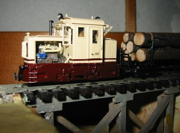 ![]() 2002/03/22 森川様 奥さんの、収納箱の話、同感なのですが、私は適当な箱を探すのが面倒くさいので作ってしまいます。本当は木でしっかり作ればよいのですが、それも大変なのでボール紙で作り表面は、そばにある紙で包みます。 写真の運材貨車の箱は文庫本のブックカバーを張ってあります。結構様になっていませんか? ![]() 2002/03/13 森川様 やまばと号 酒井から組み始めています。別にお願いしたボンネットパーツも届きました。 昨年の5月にお邪魔した時に、珊瑚のOnのモデルについての不満をお話したかと思いますが、この機関車のプロポーションについては、もう満足の一言です。5tよりも高く長いボンネット、そのために低く見えるキャブなど申し分ありません。 まだ、調整は必要ですが、何とか形になりました。未塗装だとアラが目立つのですがとりあえず送ります(後ろの客車はまだ乗工社のものです)。例によって、エンジンカバーを被せ、フロントのエアホースを移設してあります。5tクラスの機関車と並ぶと一回り大きく力強い感じがしますね。それでは、また・・・ もりこー:流石に早いですねえ、柴草さんは。皆さん作ってますかあ?出来上がったら写真を送ってください。きっと、皆さんの励みになると思いますので。 ![]() 2001/11/13 森川様 ホームページ見ました。あそこまで顔が出てしまうと恥ずかしくなってしまいますが、楽しいひと時でした。息子が「お父さん本当に楽しそうだったよ」と言っていましたが、その通りだったと思います。ワーゲンクラブの会員が何人いるのか知りませんが、一度皆さんにお会いしたいですね。出来ませんか?ワーゲンクラブ総会。 さて、メールが遅くなった言い訳ですが、あの後杉山模型のブースでベビーグースを見ていたら、隣のATAのシトロエンのレールカーに目が行ってしまいました。ボディーはロストで全軸駆動(二軸)。難点は16.5mmでしたが、9mmに改軌しようと杉山のブースからギヤー車輪を購入し、家に帰るや否や作業を開始しました。結局、購入した車輪は使用できず、手持ちの9mmの車軸にギヤーを打ち込みました。 そんなこんなで、加藤47号機はこの土日でやっと添付の写真のところまできました。しかしながら、まだ迷っています。会場で見せていただいたあの1枚の写真です。完成までには、まだシンナーが待っているかもしれません。とりあえず、ご報告まで・・・ もりこー:因みに「あの写真」とは、何もxxの写真ではなくって、47号機の色違いの写真なんです。というのは、会場で伊藤誠一氏が「ひとの写真ですから、HPなどで公開しないで下さいネ」と言ってくれたカラーコピー。上まわりの緑がまるで常磐色のエメラルドグリーンで、下まわりは黒だったんです。ちょうど居合わせた西裕之氏が「そう、僕も見たのもこんな色だった」とのこと。その写真を柴草さんにもお見せした訳です。ウーム、色は奥が深いですねエ。 ![]() 2001/11/12 森川様 99号機、つい先ほど完成いたしました。滑り込みセーフといったところです。災い転じて・・・は、窓ガラスです。ステーを壊して送っていただいたパーツがちょうど良いスケールになり、開放状態の7枚の窓を楽に切り出せました。 詳しい出来栄えは、会場で現物をご覧ください。自慢できるものではないと思いますが、窓枠とツライチの窓ガラスはなかなかイイですね。それでは、会場で・・・(加藤も組み立ててゆきたいなどと思っていましたが、無理でした。)