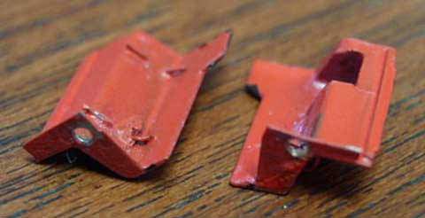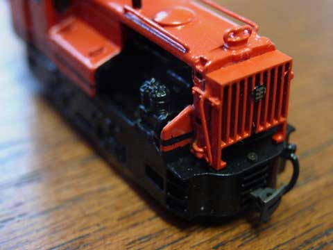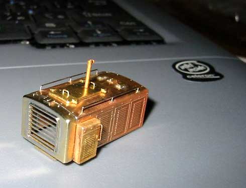 ![]() 2002/08/28 森川様 91号機、途中経過です。今回は、カバー脱着可能としつつもそれを感じさせない仕上がりを目指しています。右側は、なんとかなりましたが、コンプレッサーの側は今一です。また、台枠の文字浮き出しですが、ごらんの通り、単なる黄銅磨きだしになってしまいました。これに色を乗せるのは殆ど不可能で(私の腕では)このままで我慢しようと思っています。でも、文字がしっかり読めるのはいいもんです。で、今気づいたのですが、このロストの文字はどうやって浮き出させるのですか?想像がつきません。 さて、後は取っ手を数箇所とコンプレッサーカバーのルーバー表現で完成します。今日(8/25)は天気が良さそうだったので何とか塗装をしたものの、晴れてはいたのですが湿度が高く、色を吹いた後すぐに冷房の室内で乾かすという際どいことをしてしまいました。 模型作りの面からすると、早くからっとした秋晴れがほしい所ですね。一応塗装完了しましたが、ストライプなど入れてからまたお見せします。それでは、また もりこー:あれはエッチングで文字を浮き出させた板を使って、ロストの原型を作るんです。ラジエターの模様、SKWやKATOの文字が浮き出た軸箱蓋なんかも同様です。11月の「感謝DAY」には柴草さんも参加して下さいます。きっと作品も持って来てくださる事でしょう。