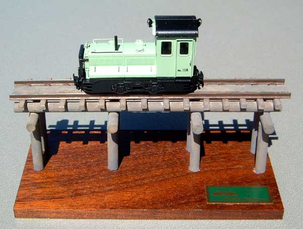 2004/06/22 こんにちわ。新潟の清水です。アンケートに答えて送っていただいた車両展示台の上に作業軌道を作りました。お手軽工作ですが、見てやってください。アンケートの結果を反映した製品が発売されるのを楽しみに待っています。展示台・プレートどうもありがとうございました。 もりこー:新潟にお住まいの清水さんは、以前ウチにも遊びに来られたことがあるユーザーさん。考えてみれば隣りの県ですから、また遊びに来て下さいネ。皆さんアイデアを凝らしてプレゼント品を利用なさっているのを拝見するのは、本当に嬉しいです。
