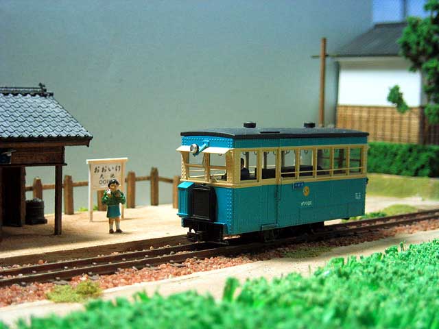 ![]() 2004/12/28 森川様 植原です、こんにちは。 先日は、早々に沼尻のインレタをお送りいただき、ありがとうございました。早速、組みあがったガソ101に施してみました。やはりレタリングがあると、雰囲気がガラリと良くなりますね。 写真を撮りましたので、メール添付でお送りします。2枚は、私のHPにアップしてある駐泊所のシーナリーの上で撮影したもの、もう2枚は軽便モジュールの大池駅の上で撮影したもの、残りは、ガソのみを撮影したものです。 キットが組みやすく、精度が高かったので、自分なりにかなり満足いく出来となりました。来年発売のサハと編成を組むのがとても楽しみです。 もりこー:植原さんはウチからもリンクしているホームページをお持ちの会員さん。最近では「軽便モジュール倶楽部」に参加されて活躍中です。ガソも丁寧に仕上げられていて、お人柄がうかがえます。