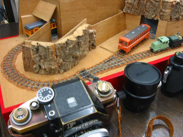 ![]() 2003/04/02 もりこーさん、こんにちは。 45cm×25cmで、当時、家にあった廃材でベースを作りました。真っ赤に塗った縁はオシャレ?いや、悪趣味?どちらかと言うと、炭鉱風なので問寒別の車両とは不釣合いですが、雰囲気は車両を乗せると迫力満点ですね。 今までにこのレウアウトで車両を走らせたことはなく、3枚目の写真の右上のカーブは半径6〜7cm。たぶん、走らないでしょうね。2軸単行なら可能かな。こうして画面で見ると、雰囲気ありますね。 問寒別の車両を走らせるには、90cm×60cmぐらいのボードに緑のじゅうたんをひいて、エンドレスにレールをひくのが良いかな。なんにも無い所を走るほうが、感じいいかな。 もりこー:山中さんも昔からの「もりこーフリークのおひとり」。実は先日、京都に用事があったので、お邪魔して話し込んでしまいました。氏は古いニコンのマニアでもあるので、そっちの話も盛り上がってしまったりしました。同じ趣味を持つ人との話って、楽しいですね。 ![]() |