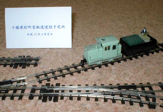 2003/04/22 モリコー様、お約束どおり「十勝寒別町営軌道」が動き出しました。 まずは、用地の確保に成功。800mm×600mmの平地です。北海道の土地は安く、ポルトガル製のコルクが一面を覆い、880円(税別)でした。レールは20数年前に購入済の少々、車両は昨年、手術の保険金の一部で購入した問寒別のDLと、手術見舞いに贈与された根室の無蓋車です。そのほかボギー客車・有蓋貨物・ミルクカー・気動車も順次購入済で保管しております。凝りに凝ったものはすぐに挫折しますので、簡単・気軽に走らせる軌道を目指して本年度開業を目標にがんばることを、宣誓いたします。 思い起こせば、中学3年生(昭和51年)の冬に高価な「ナローゲージモデリング」を購入して以来、「いつかは、僕も・・・」の夢が40を過ぎて実現です。これも、すべてもりこー様のおかげです。ありがとうございました。 次回、報告をお楽しみに!! 十勝寒別町営軌道 広報部 山中 でした。 もりこー:「初めのいーっぽ」ですね。これからどんなレイアウトに仕上がるのか、とっても楽しみです。山中さんは去年大病をされたのですが、見事に「災い転じて福と」なしましたね。