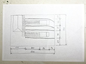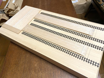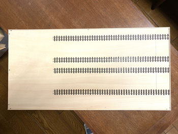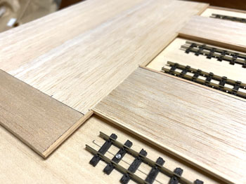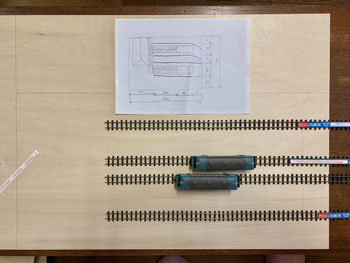 ![]() まずはその線路配置を本で確認。櫛状のプラットホームが3面あり、端っこのプラットホームは片面しか使っていないようです。 なので、あっさりとホームは2面にしてみました。 ネットで様々な方がUPされている写真を出来る限り集めて、この駅の雰囲気というか、造りというか、そんなものを頭の中に畳み込みました。 駅舎は和洋折衷のような当時のモダンな雰囲気で、これがひとつのポイントになりそうです。 あとは線路敷はバラストが土に埋もれたような感じですので、それも重要なポイントだと思いました。 ![]() そこで600x300mmの中にこの情景をどうやって収めるか、ということなのですが、今回は直球勝負というか、わざと線路を斜めに配置したりせず、実に単純に4本の線路を真っ直ぐ敷くことに決定。 特徴のある駅舎は写真で見ると結構大きいので、映画撮影用のようにその部分だけを作って全体像を思わせる、そんな方法を採ろうと思っています。 こちらも撮影用ですし、建築模型を作る訳ではありませんから(^O^)。 ![]() フラットトップの台枠はいつものように4mm厚のベニヤ板と60x9mm桧角材(いずれも今まで製作した端材で間に合いました)で箱状にして、上面の三方には2mmの桧角材を貼って土留めとする、といういつもながらの手法。 ![]() プラットホームは5mm厚のバルサを使い、縁には2mm角の桧棒を貼り付ける、というボクの一般的な手法。 その幅は「草軽のホト」の最大幅である大きく張り出したステップ部の25mmと干渉しないように縁も入れて54mm。 意外と広いのですが、このゆったりした感じが新軽井沢駅の特徴だと思いました。 |