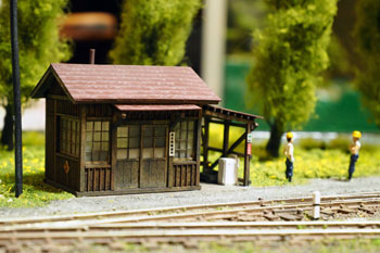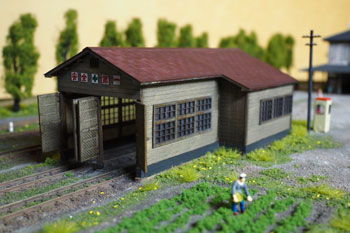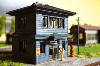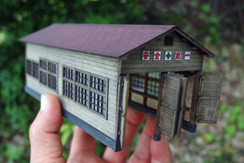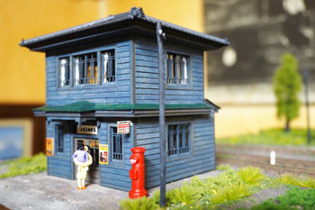 ![]() ![]() 精神的にも重荷だったポプラの木もようやく完成して、峠を越えた心境。 あとはストラクチャーをいくつか作ってやれば、目の前に「完成」のふた文字が見えてきます(^^♪。 機関庫は前にも書いたように、ウチの「杉沢の2線機関庫」を小加工して使いますので気が楽です。 土台を嵩上げしてホジ3が入るようにしたものの、この高い土台は霜の立つ北国らしさが逆に演出できて、怪我の功名にもなりました(^O^)。 ![]() 保線小屋も郵便局もクラシックストーリー社製の製品ですが、この郵便局は今は在庫がなくなってしまったみたいで、今回のように「いつの日か」を夢見て買っておいて良かったです(^_-)。 ![]() 同社の製品は作っていて部品がビシバシ合うので、無駄な手間を要することもなく、夕食後から始めて寝るまでには出来上がってしまいました(^_-)-☆。 それも木工ボンドで組み立てたのではなく、ゼリー状瞬間接着剤で組み立てた効用なのでしょう。 向かって右側の差し掛け部分には、付属のモーターカーが置けるようになっていましたが、今回は雑物置き場や洗い場として活用し、積んだ木箱・脚立・洗濯機&流しなどを置いてみました(^^♪。 ![]() こちらは五関郵便局という製品名で、実在するものを模型化したそうですが、飾り窓の雰囲気や入口の小屋根の感じが気に入って買っておいたものです。 唯一鉄道関係の建物ではないので、色気を出したくて、ライトブルーに仕上げてみました^\^)。 ![]() 御覧のようにエコーモデル製人形や小物などを配置してみたのですが、接触限界標識は自作してみました。 沼尻のそれは雪国らしく背が高かったのですが、意外や意外、同じ雪国でも頸城の場合はさほど高くないようで、写真を見ながら1mm角の桧材から作りました。 とはいえ、先端部を4辺斜めに切り落とし、白く塗って、細いサインペンで黒線を入れるだけの簡単な作業です(^^ゞ。 でも、こういった小物があるお蔭で細密感が出てきますから侮ってはいけません(^_-)-☆。 ![]() ということで完成した「頸城鉄道 新黒田駅」。あとはホジ3の入庫を待つばかりです\(^O^)/。 ![]() |