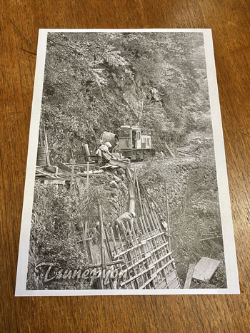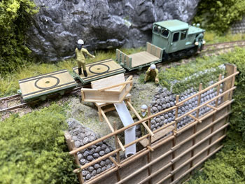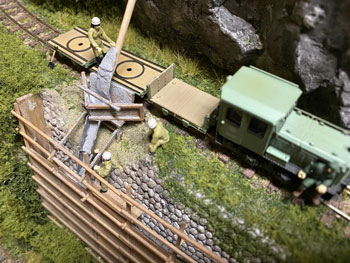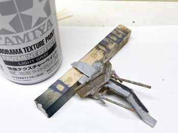 ![]() 表題の通り今回の肝です(^^♪。 まずミキサーから現場にセメントをどうやって流し込んでいるかというのをこの写真をじっくり見てプランを練りました。 まず逆スノウプロウのような木枠によって一点に集められて、プールにあるスライドコースターのような感じで流し込んでいるようなので、前者は板細工で、後者はストローを使う事にしました。 ウチにあるストローは細くてダメなので、そこで浮かんだのがコンビニでコーヒーを買うとくれるもの。 近所のコンビニに行ってサイズを測らせて貰ったらφ6mmだったのでイメージにピッタリ! これを半分に割いて使いました。木枠は0.5mm厚のバルサ材と1mm角の桧棒でそれらしく(^^♪。 ![]() ストローの部分は良いとしても、ミキサーからこの装置に流れ出す部分のセメントは何か芯になるものを用意してやらないとならない訳で、浮かんだのが木工ボンド。 芋虫のように絞り出して一昼夜固まらせます。 ![]() そうしておいたものをウェザリングを施した装置に接着して、爪楊枝を使ってタミヤのテクスチャーペイントで何となくセメントが流れているような感じで仕上げていきます。 ついでに木枠の部分もセメントが飛び散ったように汚しておきます。 ![]() これを地面に接着。ミキサーから流れ出す部分は実際にミキサーが出来上がってみない事には何ともなので、ファジーな感じにしておきます(^^♪。 |