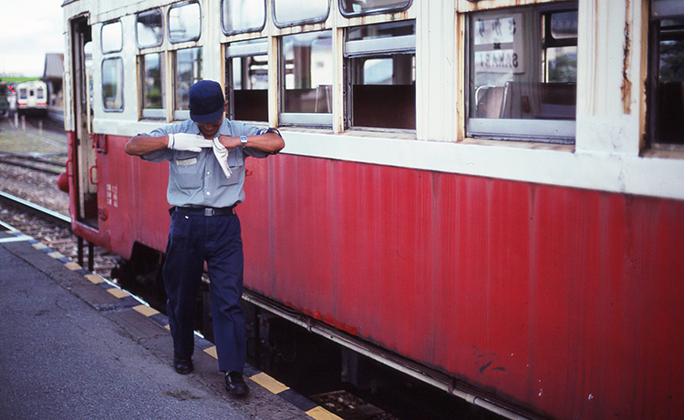 ![]() ![]() ![]() ![]() ![]() ![]() ![]() 岩手開発鉄道にDLの取材を申請するために電話をしていたら、その中で何と2日間だけ元・夕張鉄道の気動車キハ301が走るという話を聞き、これは何をおいても行かなければということで急遽岩手に向かいました。 親しい友人にも知らせたら有給休暇をとって同行するということで3人で。 キハ301は夕張鉄道が廃止されたときにキハ201と202の良いとこ取りで1両にまとめられた車両でしたが、食パンのような形をしたキハ202がメインで使われていました。 終始予備車のような存在でしたが、キハ202の定期検査でその間だけ運転されるという話だったのです。 この時は本当に興奮しました。そんな話を耳にした幸運のもですが、何といっても元夕張鉄道の車両、しかもキハ07のようなスタイルの同社発注車という価値あるものの走っている姿が見られるのですから。 1992年4月1日に日頃市線の旅客輸送は廃止され、廃止後は個人に売却されたものの、引渡しがされずに結局2001年7月に解体されてしまいました。 ということは、この時がラストランだったことになります。 |