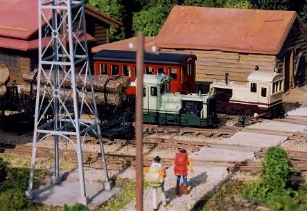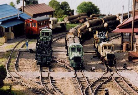 助六の酒井製5tDL 第1回 皆さんお待ちかねの「助六の5t」がいよいよ登場です。まだ、総ての部品が出来上がっている訳ではないので、出来上がった部品である程度まとまった段階でUPして行きます。従って不定期になりますがお楽しみに! この製品は複雑な部品構成になっていますので、ここでは代表的な「前期型」と「後期型」を平行して解説していこうと思います。 1.まず、ボンネットに仕切板を半田付けしてから、ラジエターを半田付けします。この時にテスリ用の小さい穴を半田で塞いでしまったとしても、気にしないようにしましょう。0.4mmのドリルさえ有れば良いのですから。 ![]() 2.細かい部品を付けていきます。エアーフィルターカバーは水平になるように、排気管は垂直になるように留意しましょう。角度を少し違えて見てみましょう。 ![]() ![]() 3.次はキャブの組み立てです。キャブ側板に前後の妻板を半田付けします。左が前期型、右が後期型です。 ![]() 4.キャブに細かい部品を付けていきます。屋根に付くドアーレールは、リベットが6個の方ですので間違えないように(台枠に付く方は5個です)。その上には雨樋が付きます。後期型のヘッドライトやタイフォンは、ヒサシを付けてから半田付けします。この際にヒサシのヘッドライト逃げ用のV字を少し広げてU字にして下さい。後部の引き違い窓は、自分の部屋にある窓を観察して、右側が手前にくるように半田付けしましょう。 ![]() ![]() 第2回 1.ドアーを組み立てます。まずランナーから切り離し、折り曲げます。この折り曲げ作業をし易いように、折り曲げしろを敢えて長めにしてありますので、折り曲げて各コーナーを半田で補強してから、ドアーの厚みを0.8mm程度までヤスります。#400位の耐水ペーパーの上でシコシコやっていれば、じきにこの程度の厚みにまでヤスれます。そののちに、テスリを半田付けして、ドアーの裏側をツライチに仕上げておきます。このドアーをキャブに半田付けしても良いのですが、塗り分けの事を考慮して塗装後に接着する事にします。自信のある方は半田付けしても勿論構いません。 ![]() ![]() 2.さて、ここでキャブの角穴にボンネットの凸部を差し込んで半田付けします。点検扉の部分でも半田付けしておきます。この際に捻じれがないように注意しましょう。これで一応上まわりの半田付けは完了です。 ![]() 3.下まわりはギヤーフレームから工作を始めます。まず写真左のようにスペーサーを半田付けしてから、写真右のように前後の取付板を半田付けしますが、歪みのないように注意しましょう。 ![]() 4.台枠には軸受を組み込んで半田付けします。半田を流す部分はキサゲなどで磨いておくと、良く半田が流れるでしょう。 ![]() 5.今度はエンドビームをL字型に組み合わせて半田付けします。接合面の直角には注意しましょう。I台枠とJ台枠は左右ありますので、前後のエンドビームを半田付けする時には、間違わないように注意しましょう。そして、L字とL字とを組み合わせて箱型にします。ガラス板などの平らな板の上に台枠をひっくり返して乗せてみて、歪みがないかどうかをチェックしておきます。 ![]() ![]() 6.床板を台枠に落とし込んで半田付けし、上下取付板はその後面が床板のギヤー逃げ角穴と合うような位置に半田付けします。エアーホース、ドアーレールもこの段階で半田付けして台枠の工作も完了です。 ![]() 第3回 1.塗装に入る前に、エンジンの加工をします。コスト削減の為に、このエンジンは他の機種にも使えるように設計されているので、上の部分を若干削って頂く必要があります。写真のようにカムカバーの4つの突起と、エアークリーナーへ行く配管と排気管を斜めにヤスッて、仮にボンネットに入れてみて下さい。納まりが良かったら塗装に移ります。 ![]() 2.上松運輸営林署塗装にする場合は、スカ線クリームと阪急マルーンに、王滝営林署塗装にする場合は京阪若草と湘南グリーンに塗ります。ギヤーフレーム関連やラジエター保護枠・エンジンやコンプレッサーは黒塗装です。 例によって竹串に部品を刺したり、エンジンやドアーなどの小部品は、竹串に両面テープを巻きつけて、それに部品を貼り付けて塗装します。 ![]() ![]() 3.まず一色目が塗り終わった上まわりです。今回は前期型・後期型ともに、上松・王滝両方の塗装にしてみました。ラジエターグリルはあとで黒く塗ります。 ![]() 4.塗装を終えた下まわりです。台枠は各々、まず若草色やクリーム色に塗ってから緑色やマルーンを塗ります。面倒ですが、そうしないと上まわりの帯と同じ色調にならないし、特にマルーンの場合は下地の色が透けてしまい、発色が悪くなってしまうからです。左上の部品は台枠に付くウエイトです。 ![]() 5.乾燥を待っている間に、モーター配線をしておきます。 ![]() 第4回 1.ギヤーフレームにアイドラーギヤーや動輪を組み込みます。カプラーはカプラーピンで止めて、台枠の下側でエポキシ系接着剤で