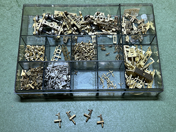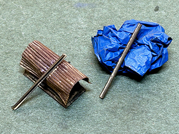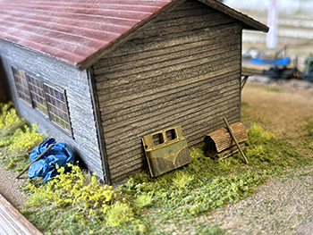 ![]() ![]() 当社製転轍器を組み立てて設置し、手持ちの人形を適当に配置してみました(^^♪。 またちょっとエコーモデルに人形を注文しておいたので、届いたら増員してみましょう(^-^)。 ![]() ![]() 何となくやってみたくなったのが「岩手富士製特殊軽量機関車の廃車体のある風景(長い)」です。 最初の写真はこの機関車の採寸をした2008年魚梁瀬の廃車体ですが(ちゃんとレストアされたものも1両ありました)、この感じをやってみたくなったんです(^^♪。 残り部品が入っている箱を見たら前面は1個だけ残っていました。 普通の岩手富士の塗装をしてもつまらないので、「王滝色」に塗ってみて強めにウェザリング。そして機関庫の裏に立て掛けてみました(^_-)-☆。 ![]() 何となくまだ寂しい(^O^)。そこで何か廃品も欲しくなって、その廃品を物色してみました。 工作歴半世紀以上にもなると様々な部品がパーツ入れにはあるもので、目についたのが大昔に珊瑚模型店に勤めていた頃にゲットしたジャッキ。 明治時代の古典蒸気機関車には必ず2個、テンダーに載せられていたもので、それを使ってみようというアイデアが閃いた訳です(^-^)。 ジャッキなどというものは、さほど構造的に変化するものでもないし、機関庫の裏に放っておいても不自然ではないでしょう(^^♪。 ![]() まず黒く吹き付けてウェザリング、その上にキャンベル製のアルミ製波板を接着。 波板が風で飛ばされないようにレールで押さえてる雰囲気にしようと、コード40のレールを用意しました。 そこでまた閃いたアイデアはお得意のブルーシートを適当に丸めて放ってある状態(^-^)。 調べてみたらブルーシートというのは1960年代半ばから販売されたもののようで、時代設定的にも合致するでしょう(*^^)v。 料理用ラップを適当に切って丸めて、瞬間接着剤で広がらないように固定してから塗装。 ![]() 波板は艦底色に塗ってからハンブロールのサビ色やウェザリングマスターで汚し、ブルーシートもウェザリングマスターでニュアンスをつけておきました。 翌朝見たら塗料も完全に乾いていたので、当該箇所の雑草を除去してから接着。 段々と雰囲気が出てきました(*^^)v。 |