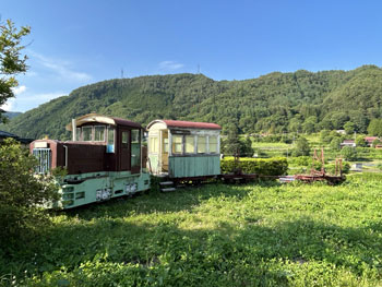 ![]() 滝越からの帰りみち、今は氷ケ瀬土場と名前を換えていますが、脇にある大鹿停車場跡に寄ってみました。 ここはウグイ川線から5tDLで運ばれてきた運材列車が組成されて長大化され、10tDLが牽く列車に仕立て直されたところです。 そのウグイ川線へと抜けるトンネルもまだ残っています。 ![]() これまた帰り道の脇にある三岳小中学校に保存されている98号機やC型客車No.5などの確認をしておきました。 ここに行くといつも思うのですが、保存車両はオリジナルに塗って欲しいということ。 段々とオリジナルの色を知ってる人間が亡くなってゆき、それを知らない人間がこれを見て「こういう色だったんだ」と勘違いしたり、もしかしたら「これは珍しい塗装だから、何かあったに違いない」と思い込んだりしないように。 かくして丸一日掛けて周った保存車訪問ですが、それなりに収穫もあり、楽しい一日でした。 皆さんもまずは「赤沢」へ行かれてみては如何でしょうか?「森林鉄道」に乗るとスパルタンな乗り心地が体験できて楽しいですよ(^^♪。 |