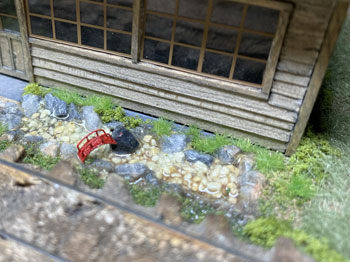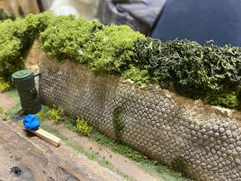 ![]() ![]() また下草の続きです(^^♪。使う材料はお馴染みのMARTIN WELBERG製。 微妙に色合いや高さが違うものを組み合わせながら、木工ボンドで接着して変化を出していきました(^_-)。 ![]() ふと或るアイデアが浮かんだので、早速やってみました(^_-)。 竹特有の節がない、竹なのに葉が広葉樹みたいと、このままではとても竹に見えないトミーテックの竹。でも、何だかんだ云いながら竹竿として時々使っますけどネ(^^ゞ。 これをシンボルツリーにもたせ掛けて、何やら農作業用の竿に見立ててみました(^^♪。ま、ないよりはマシでしょう(^O^)。 やはり青竹のままではナニなので、バフに塗っておきました(^O^)。 ![]() あと、「車輪清浄装置」や詰所から排出される下水の排水口に、釣り糸から作った「水」を接着しました。 これは釣り糸を16本束ねて瞬間接着剤で固め、固まった後にカッターで束に切れ込みを入れたり、長さを微妙に違えたりしたもの。 流石にこのままではナニなので、水の勢いや石積みと接した部分の衝撃をどう表現するかが課題です。 もちろん飛び散った水分で周囲は濡れているはずなので、光沢も出さなければならないし。 艶消し色の風景の中にあって、光沢のものというのは目立つので、「車輪清浄装置」もそうでしたが気を抜けません。 ![]() ![]() フォーリッジが届いたので、適当な大きさに千切って下草の上に木工ボンドで接着していきます。 本当にこの材料はマジックで、ライケンの上に乗せるとグッと立体的になります(^_-)-☆。あと、垂れ下がった草の風情が得られるのも良いところ。 今日届いたのはフォーリッジだけではなく、いつも協力してくれている工房からディカールが(^^♪。 いま手元にあるMr.KATOのレタリングは「青森土木」なので、土木会社じゃあ何でもオカシイでしょうということで、オリジナルのものを作って貰いました(*^^)v。 明日は「青森土木」の上を黄色く塗って(僅かにこの文字が透けると良いのですが)、「加増田鉱業所」のレタリングを貼ります(^^♪。 |