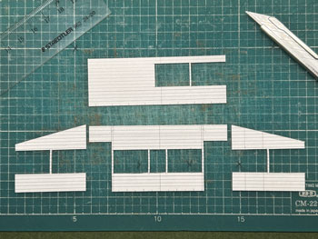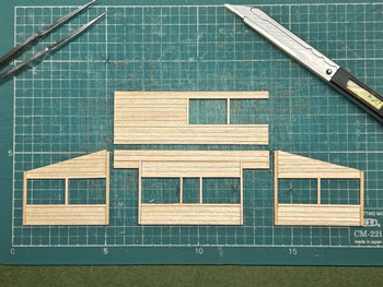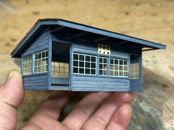 ![]() ![]() 数少ない写真から判断して、魚梁瀬停車場の待合室を作ってみました。 扉もない実に開放的なもので、それだけに製作中に窓柱だけの部分は華奢で、扱いには要注意。 扉がないということは中も見えてしまうので、ベンチだけは作っておきました。 ![]() ![]() 以前作った小屋も活用するので、同じ軌道関連施設というのを感じさせるために、同じミディアムブルーに塗ってみました。 屋根には波板を貼って艦底色に塗り、ウェザリングマスターでサビさせておきました。 中が見えてしまうベンチは無人というのも淋しいので、若いアベックを(^^♪。こんな山奥に遊びに来るアベックも奇特な人たちです(^O^)。 ![]() ホームの縁石は紙粘土で作りましたが、練って伸ばしたものを定規でプレスして一定の厚さにして、型押しして切断。 ![]() 切断した縁石は5mm厚のバルサ板で作ったホームに接着。 この待合室は写真で見るとホームよりも一段高くなっているので、3mm厚のバルサ板を貼って表現しています。 ![]() 縁石は薄く溶いたフラットブラックを塗りボードに接着。段々と賑やかになってきました(^_-)。 |