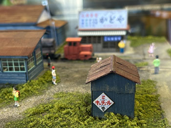 営林署の前には緑十字の旗を立てるべく、φ0.5真鍮線を白く塗ったものにコピー用紙を貼って立てました。